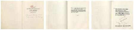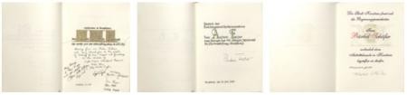 1962 schenkte die Industrie- und Handelskammer Konstanz der Stadt Konstanz ihr erstes Goldenes Buch. Davor trugen sich wichtige Besucher auf losen Büttenblättern ein, die damals nachträglich eingeheftet wurden.