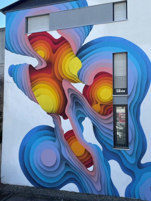 Meine Werke sind bewusst offen für Interpretation. In Konstanz habe ich allerdings mit der Idee gespielt, dass die Stadt eine Art „Übergang" darstellt. Zwischen Ländern, zwischen Geschichte und Moderne, zwischen Wasser und Land. Das Mural könnte also als Portal zu einer anderen Ebene der Wahrnehmung gesehen werden. Aber wie immer ist es dem Betrachter überlassen, was er darin erkennt.