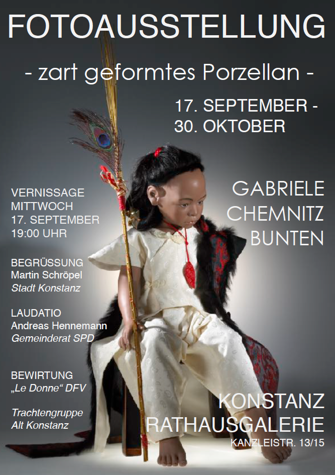 Vom 17.09. bis 30.10.2025 ist in der Rathausgalerie die Fotoausstellung "zart geformtes Porzellan" der Künstlerin Gabriele Chemnitz-Bunten zu sehen.
