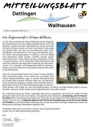 Titelbeitrag: Gedenkfeier zum Volkstrauertag am Sonntag, 16. November 2025, 10 Uhr an der Kapelle am Friedhof in Dettingen