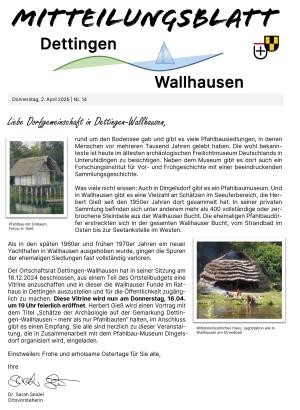 rund um den Bodensee gab und gibt es viele Pfahlbausiedlungen, in denen Menschen vor mehreren Tausend Jahren gelebt haben. Die wohl bekannteste ist heute im ältesten archäologischen Freilichtmuseum Deutschlands in Unteruhldingen zu besichtigen. Neben dem Museum gibt es dort auch ein Forschungsinstitut für Vor- und Frühgeschichte mit einer beeindruckenden Sammlungsgeschichte. Was viele nicht wissen: Auch in Dingelsdorf gibt es ein Pfahlbaumuseum. Und in Wallhausen gibt es eine Vielzahl an Schätzen im Seeuferbereich, die Herbert Gieß seit den 1950er Jahren dort gesammelt hat. In seiner privaten Sammlung befinden sich unter anderem mehr als 400 vollständige oder zerbrochene Steinbeile aus der Wallhauser Bucht. Die ehemaligen Pfahlbaudörfer erstreckten sich in der gesamten Wallhauser Bucht, vom Strandbad im Osten bis zur Seetankstelle im Westen. Als in den späten 1960er und frühen 1970er Jahren ein neuer Yachthafen in Wallhausen ausgehoben wurde, gingen die Spuren der ehemaligen Siedlungen fast vollständig verloren. Der Ortschaftsrat Dettingen-Wallhausen hat in seiner Sitzung am 18.12.2024 beschlossen, aus einem Teil des Ortsteilbudgets eine Vitrine anzuschaffen und in dieser die Wallhauser Funde im Rathaus in Dettingen auszustellen und für die Öffentlichkeit zugänglich zu machen. Diese Vitrine wird nun am Donnerstag, 16.04. um 19 Uhr feierlich eröffnet. Herbert Gieß wird einen Vortrag mit dem Titel „Schätze der Archäologie auf der Gemarkung Dettingen-Wallhausen – mehr als nur Pfahlbauten“ halten, im Anschluss gibt es einen Empfang. Sie alle sind herzlich zu dieser Veranstaltung, die in Zusammenarbeit mit dem Pfahlbau-Museum Dingelsdorf organisiert wird, eingeladen.