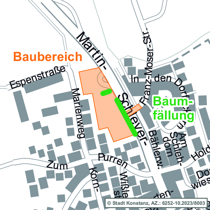Mit dem Wechsel in die nächsten Bauabschnitte für die Erschließung des Baugebiets Marienweg in Litzelstetten, wird es in den folgenden Tagen zu Verkehrseinschränkungen rund um den Kreuzungsbereich Martin-Schleyer-Straße / Franz-Moser-Straße kommen.