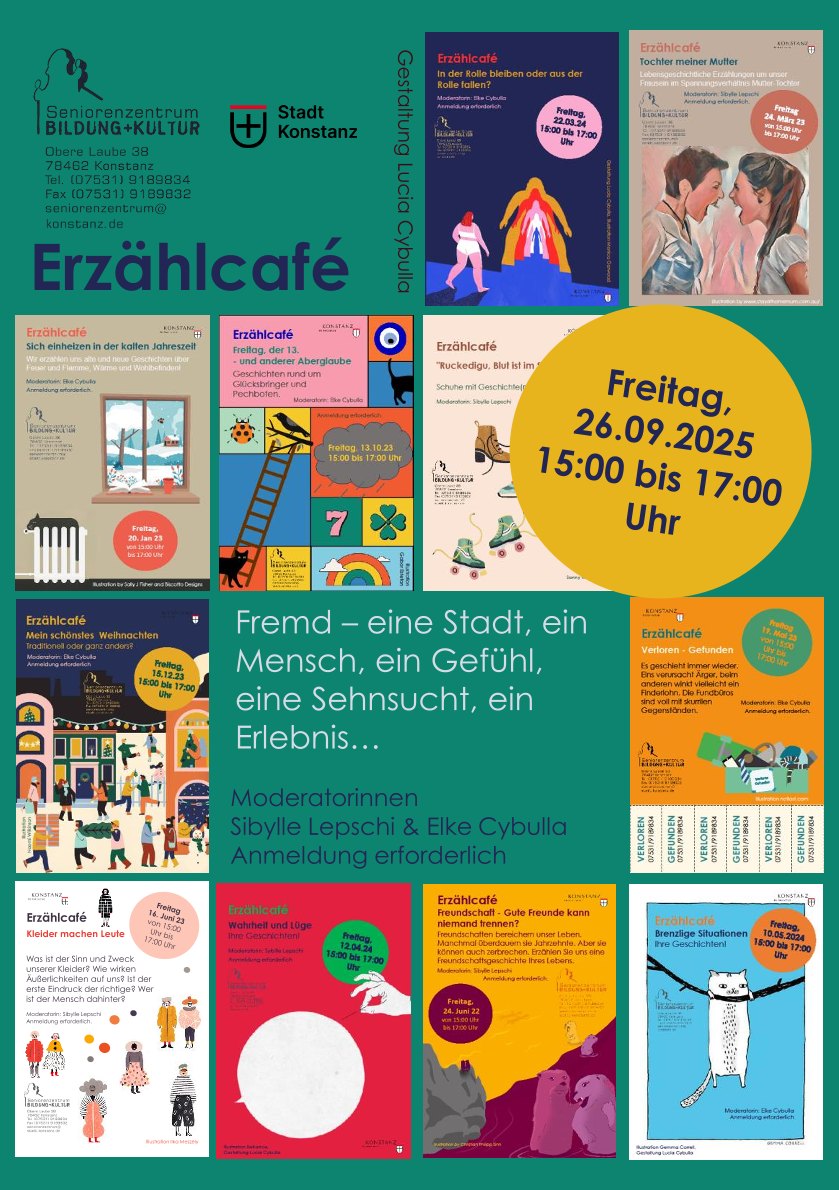 Ein Land, eine Stadt, ein Mensch, ein Gefühl, eine Sehnsucht, ein Erlebnis. Wir alle machen immer wieder die Erfahrung von Fremdheit. Von diesen Eindrücken und Erlebnissen erzählen die Besuchenden sich im Erzählcafé. Moderiert wird die Veranstaltung von Elke Cybulla und Sibylle Lepschi.