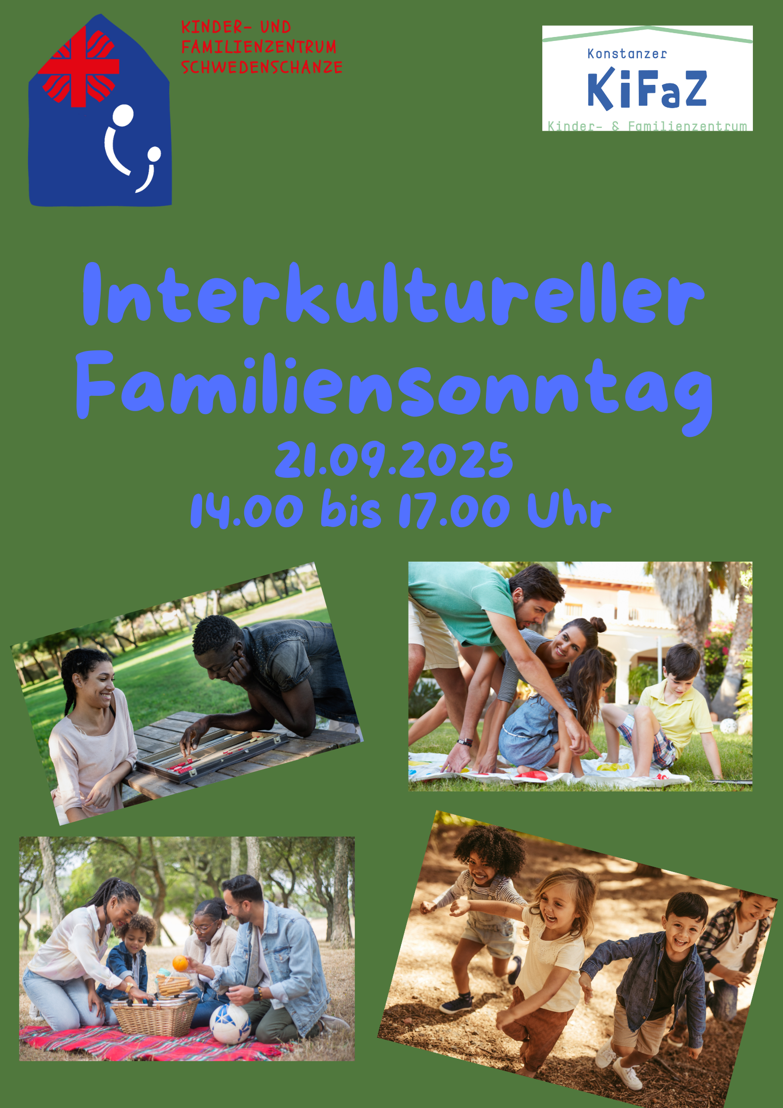 Der interkulturelle Familiensonntag bietet Gelegenheit, in entspannter Atmosphäre verschiedene Kulturen kennenzulernen und an tollen Angeboten für die ganze Familie teilzunehmen. Das Team des Offenen Spielegartens, der sonst immer dienstags und donnerstags von 14:30 bis 18:30 Uhr für Familien in Konstanz geöffnet ist, gestaltet das Programm gemeinsam mit dem Verein Spielraum Bodensee e.V. Gemeinsam stellen sie interaktive Spiele aus unterschiedlichen Regionen der Welt vor und laden dazu ein, diese gemeinsam zu entdecken und auszuprobieren. Ein vielfältiger Nachmittag für Groß und Klein!