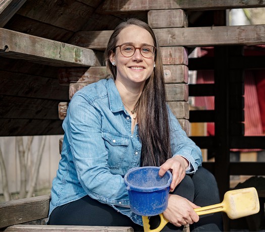Ich habe eigentlich keinen ganz klassischen Weg hinter mir. Nachdem ich auf keinen Fall wie meine Eltern Lehrerin werden wollte (lacht), habe ich erst einmal nach dem Abitur ein FSJ gemacht, dann Soziale Arbeit in Stuttgart studiert. In dieser Zeit hatte ich eher Kontakt zu älteren Menschen, das hat mir nicht ganz so gelegen. Die Krippe erschien mir danach als ein passendes Kontrastprogramm und genauso war es auch. Der Studiengang „Frühe Kindheit“ hat mich dann hier nach Konstanz gebracht. Ich wollte gern noch mehr theoretisch verstehen, was ich in der Praxis schon teilweise umgesetzt hatte. Die Arbeit jetzt hier im Kindergarten ist nun die perfekte und logische Konsequenz aus dem Ganzen. Diese Altersgruppe hatte mir noch gefehlt.