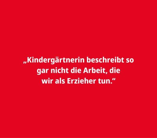 Ich kann sofort sagen, welches Wort mir nicht gefällt! (lacht) Kindergärtnerin nämlich, denn das beschreibt so gar nicht die Arbeit, die wir als Erzieher tun! Vielleicht trifft es so was wie: verstehender Unterstützer, Begleiter und Helfer.