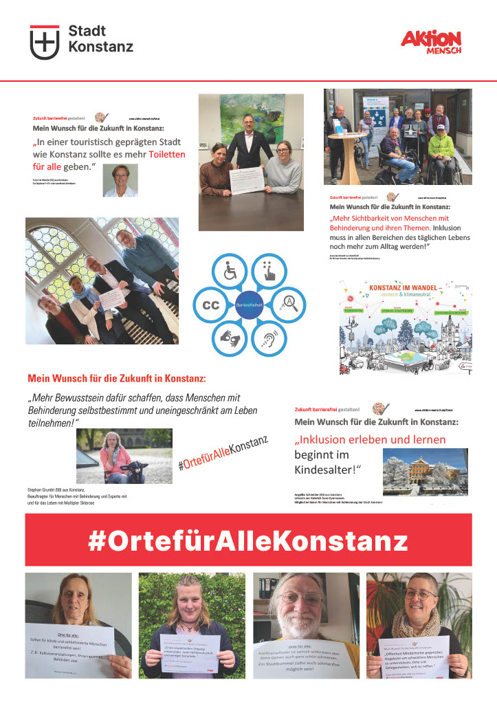 Der Inklusionsrat Konstanz macht sich mit einer Social Media Aktion unter dem Motto #OrtefürAlleKonstanz SICHTBAR und darauf aufmerksam, dass Teilhabe-Barrieren für Menschen mit Behinderung leider kein Randproblem in unserer Gesellschaft sind.