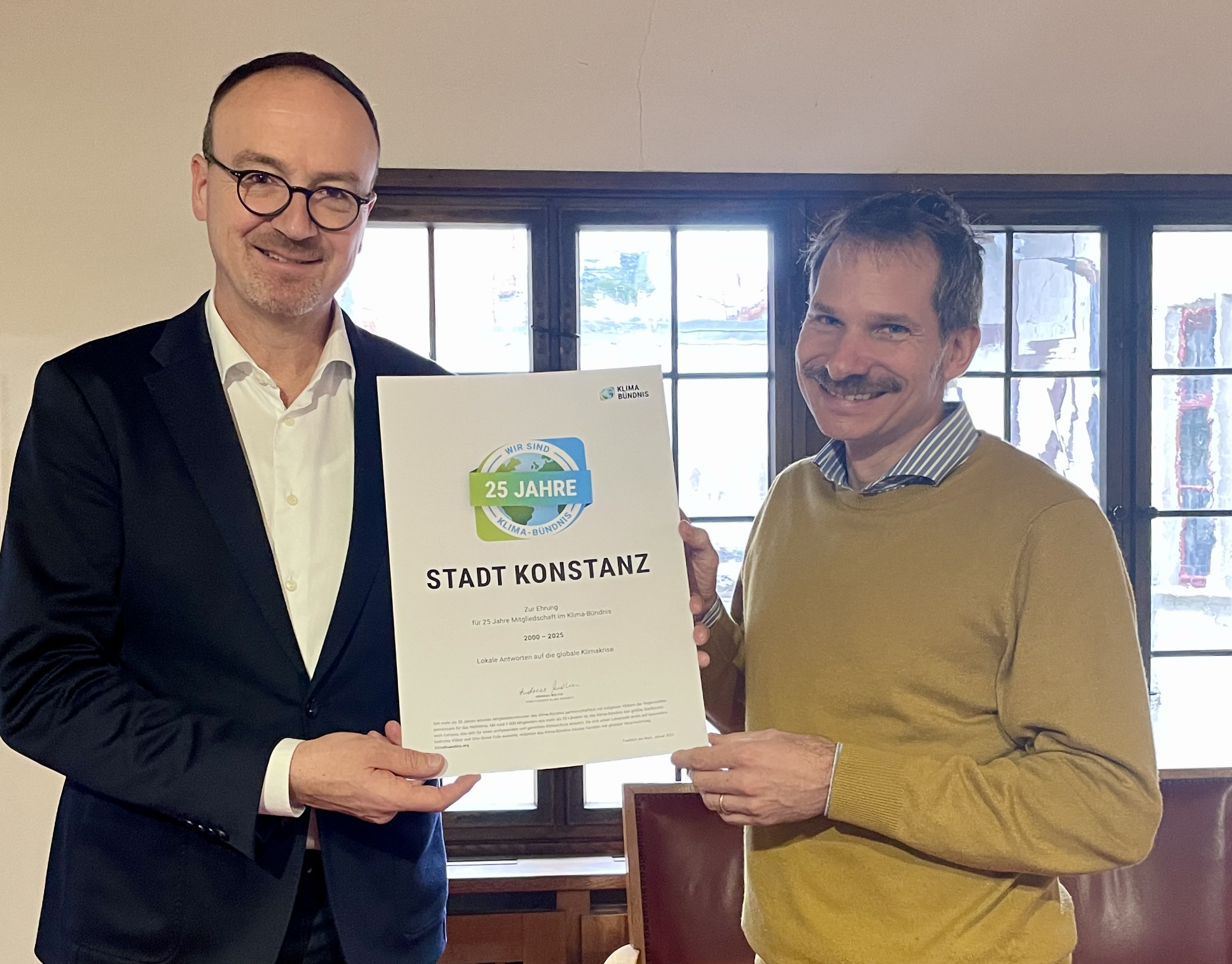 Bereits seit 2000 ist die Stadt Konstanz Mitglied im Klima-Bündnis, dem größten europäischen Städtenetzwerk für einen umfassenden und gerechten Klimaschutz. Das Klima-Bündnis hat die langjährige Mitgliedschaft nun mit einer Urkunde gewürdigt und das unermüdliche Engagement im kommunalen Klimaschutz ausgezeichnet.
