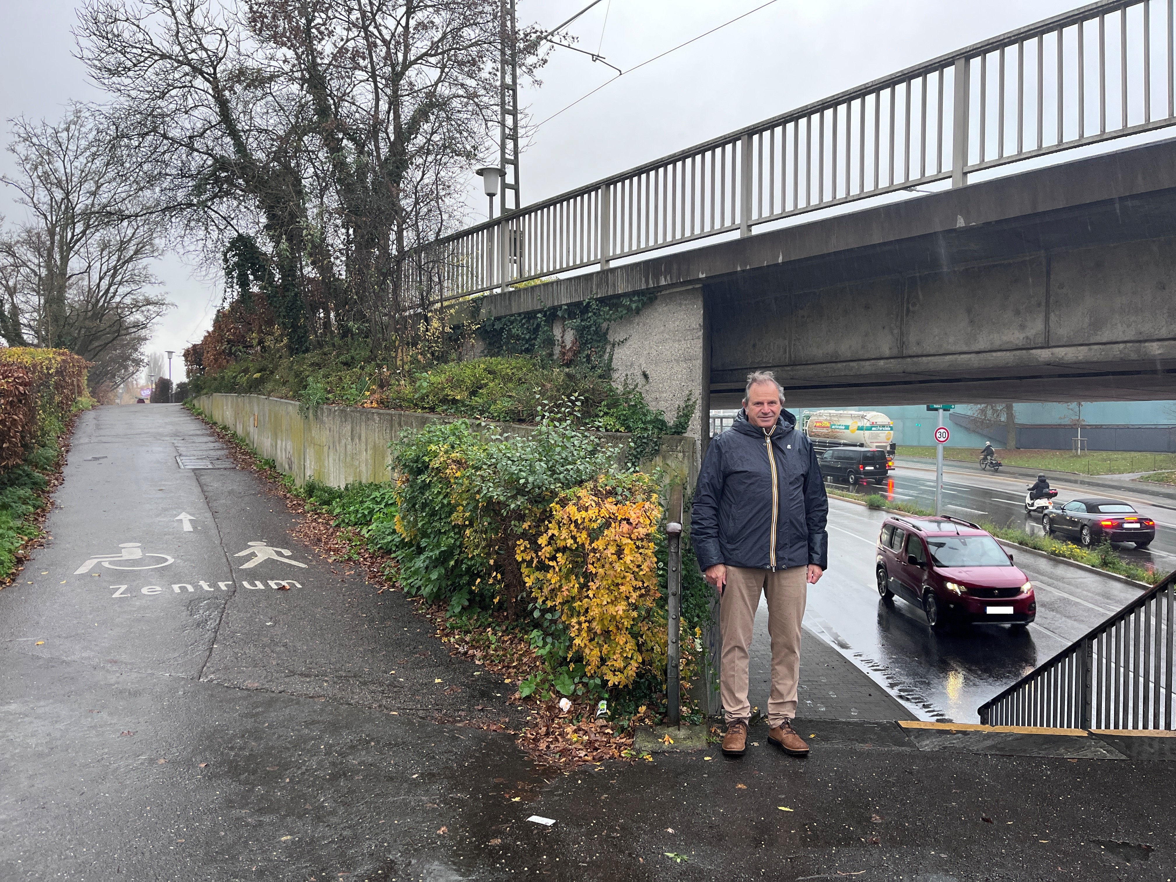Ziel der Maßnahme ist es, die bisherige Treppenanlage durch eine barrierefreie Rampe zu ersetzen. Damit wird der Zugang zur Bushaltestelle deutlich einfacher – insbesondere für mobilitätseingeschränkte Personen, Eltern mit Kinderwagen und Menschen mit Gepäck. Gleichzeitig wird die Engstelle im Bereich des Gehwegs unter der Eisenbahnbrücke entlang der B 33 von aktuell 1,60 m auf 2,20 m verbreitert, um mehr Platz und Sicherheit für alle Fußgängerinnen und Fußgänger zu schaffen. Zudem ist die Pflanzung eines Baumquartiers geplant.