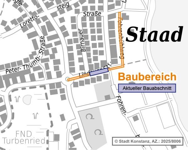 Im Auftrag der Entsorgungsbetriebe Stadt Konstanz (EBK) wird die ca. 420 m lange Druckleitung vom Pumpwerk Fohrenbühl am Hörlepark in Konstanz Staad bis zum Kreisverkehr von Lindauer Straße, Jakobstraße, Hermann-von-Vicari-Straße erneuert. Mit den vorbereitenden Arbeiten wird in den nächsten Tagen begonnen. Die Kanalerneuerung beginnt kommende Woche mit dem ersten Bauabschnitt.