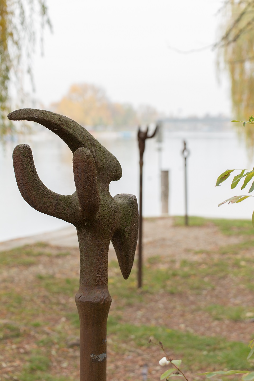 Die Skulpturen des Freiburger Künstlers Jörg Siegele wurden anlässlich der Einweihung der Fahrradbrücke am 29. Juni 1991 im Heroseépark aufgestellt. Zuvor waren sie Teil einer Ausstellung dreier Künstler des Kunstverein Konstanz im Wessenberghaus. Eine Skulptur fand jedoch ihren Platz nicht im Heroseépark, sondern auf der anderen Seite der Brücke auf einer kleinen Verkehrsinsel, die die Fahrradfahrer passieren, um in den angrenzenden Kreisel einzufahren. Auf den aus Holz und Eisen gefertigten Stelen präsentieren sich dem Betrachter verschiedene Formen, deren Bedeutung sich nicht direkt erschließen lässt. Die Formen ähneln spitzen Schnäbeln, Hörnern, Krallen oder Tentakeln und lassen dem Betrachter viel Raum für eigene Assoziationen.