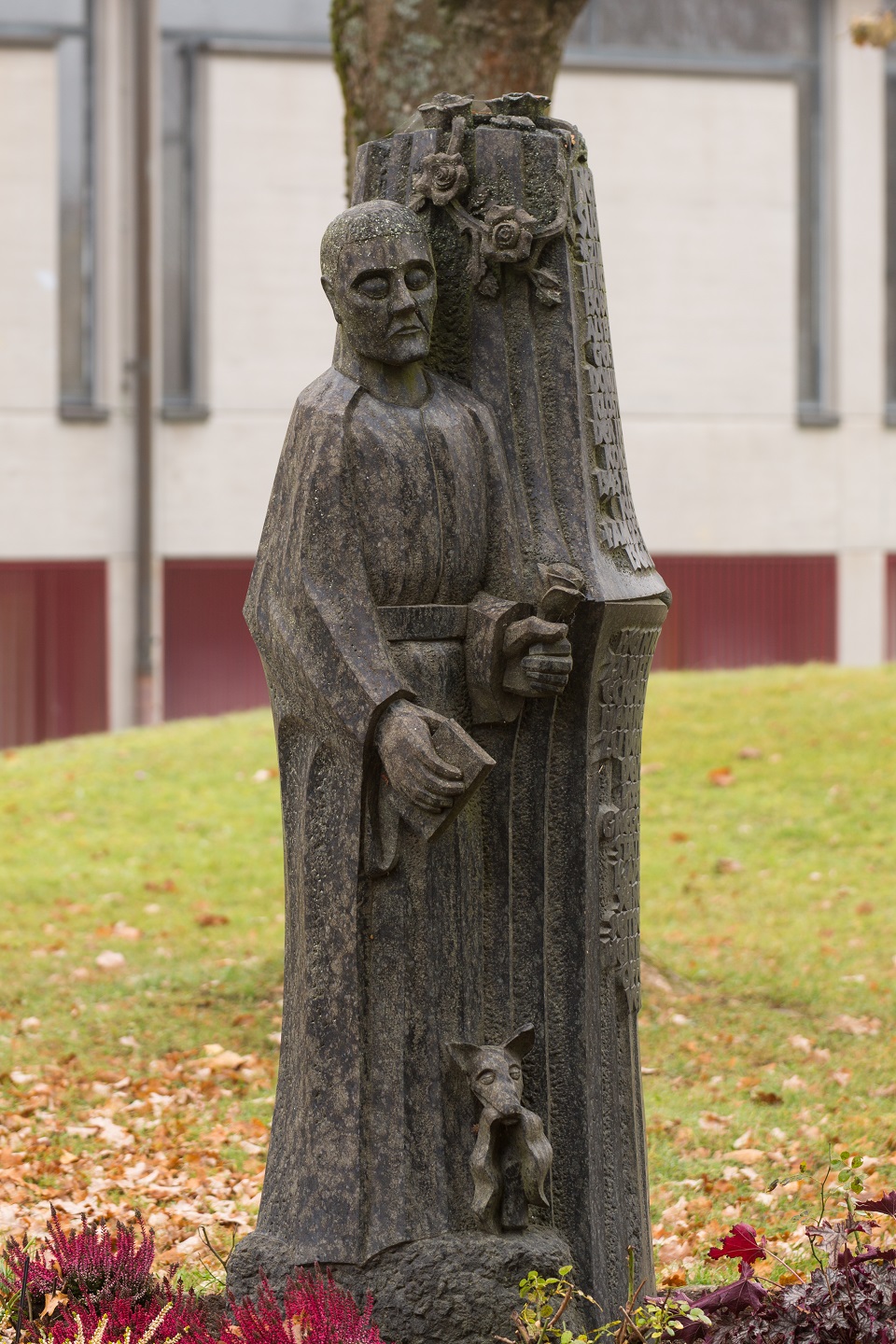 Die Figur des Seligen Heinrich Suso befindet sich auf der Wiese vor der Suso-Kirche und stammt aus dem Jahr 1987. Der Bildhauer Matthias Blessing schuf ein lebensgroßes Halbrelief aus Stein, welches den mittelalterlichen Mystiker und Dominikaner Heinrich Suso - auch Seuse gennnt - zeigt. Heinrich Suso wirkte unter anderem auch in Konstanz, wo er im Alter von 13 Jahren in den Konstanzer Dominikanerorden eintrat. Die Geschichte des von der katholischen Kirche als seelig Verehrten, lässt sich auf der Inschrift auf der Rückseite der Figur nachlesen.