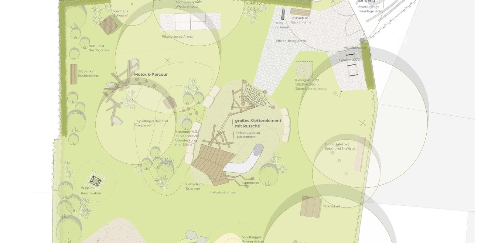 Barrierefreiheit, Spielwert und Aufenthaltsqualität im FokusSeit Anfang März baut die Stadt Konstanz den Spielplatz Kreuzlinger Straße in Stadelhofen um. Dafür hat sie in mehreren Beteiligungsrunden viele Anregungen aus der Bevölkerung berücksichtigt. Eine davon ist, den Platz nach einem einheitlichen Thema zu gestalten. Eröffnet wird der neue Platz voraussichtlich Mitte Mai. Der einzige, größere Spielplatz in Stadelhofen ist in die Jahre gekommen. Er liegt versteckt in zweiter Reihe zwischen Wohnbebauung und dem Lidl-Supermarkt. Das soll sich ändern. Ziel ist, den Spielplatz zu einem lebendigen Aufenthaltsort im Viertel zu gestalten. Wie sich die BewohnerInnen des Viertels diesen Ort vorstellen, haben mehrere BürgerInnen-Beteiligungsrunden gezeigt. Die Ergebnisse wurden im April 2024 öffentlich vorgestellt. Ein Überblick: Themenbasiert gestaltetThema des neuen Spielplatzes ist “Im Stadel“. Ein Stadel ist eine Scheune oder ein Heuschober auf einem Bauernhof. Bunte Schlangenlinien führen aus der Kreuzlinger Straße zum Spielplatz und verbinden die neuen Spielangebote. Sie sind dem Thema entsprechend aus Holz gefertigt. Dazu gehören unter anderem ein Klettergerüst, verschiedene Wipptiere und kleine Hütten. Die Bepflanzung mit verschiedenen Gräsern und „Heu“ ergänzt das Thema. Entlang der bunten Schlangenlinien gliedert sich die Spielplatzfläche in die Bereiche Fortbewegen, Verweilen und Spielen. FortbewegenEin Ziel der Stadt Konstanz ist, den Spielplatz so barrierefrei wie möglich zu gestalten. Der Platz wird für so viele Benutzende wie möglich zugänglich sein, unabhängig von Fähigkeiten und Einschränkungen. Pflasterbeläge, eine ebene Rasenfläche sowie Rampen und Stege gewähren Zugang zum Spielplatz und zu allen Spielgeräten. Dieses Vorgehen entspricht universellen Designprinzipien. VerweilenEin weiterer Fokus liegt darauf, den Aufenthalt durch Bepflanzung und üppige Grünflächen so angenehm wie möglich zu gestalten. Vielfältige Sitzmöglichkeiten und Ruhebereiche laden zum Verweilen ein. Dazu gehören Sitzbänke mit Rückenlehne, unter- und anfahrbare Spiel- und Picknicktische sowie Sitzmauern. Bäume spenden Schatten, und ein Trinkbrunnen verschafft Abkühlung und Erfrischung. SpielenFür Jung und Alt wird es 'Im Stadl' Spielangebote für verschiedene Fähigkeiten und alle Sinne geben. Im Randbereich laden Maltafeln dazu ein, kreativ zu werden. Eine Bühne bietet Raum für kleinere Veranstaltungen von und mit den Bewohnenden aus Stadelhofen. 4-Gewinnt- und Schachtische laden nicht nur zum Spielen, sondern auch zu neuen Begegnungen und Bekanntschaften ein.Im Zentrum des Spielplatzes steht ein Klettergerüst mit Rutsche. Hier lässt sich nicht nur klettern, sondern auch balancieren und hangeln. Die altersgerechten, teils auch anspruchsvolleren Aufgänge und unterschiedlichen Abgänge stellen den Kindern spielerische Herausforderungen.Ein separater Sandkasten mit Rutschbrett und Hügel lädt die Kleinsten ein. An sie richten sich auch die Kugelbahn, das Spielhaus, die Tischtennisplatte, die Schaukel und der Sandeltisch.
