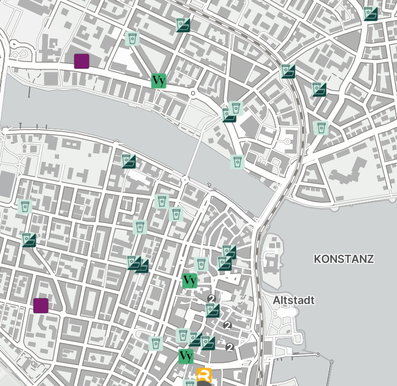 Welche Gastro-Betriebe in Konstanz bieten ein Mehrweg-System für Getränke und Speisen to go an? Wo kann ich meinen Mehrweg-Kaffeebecher zurückgeben, wenn ich in der Stadt unterwegs bin? Egal, ob man als TouristIn zu Besuch ist, neu in der Stadt wohnt oder die Stadt schon lange kennt: Der Mehrwegweiser schafft für diese Fragen Abhilfe. Die Online-Übersichtskarte unter konstanz.de/mehrwegweiser zeigt nicht nur die Mehrwegangebote teilnehmender Gastro-Betriebe, sondern auch, welches System die Betriebe jeweils nutzen. So können KundInnen gezielt nachschauen, wo sie ihr Mehrweggeschirr zurückgeben können, auch wenn sie es vielleicht zuvor in einem anderen Betrieb gegen Pfand gekauft haben. In der Karte ist zusätzlich vermerkt, ob ein Betrieb zum Beispiel nur Mehrweg-Kaffeebecher ausgibt und zurücknimmt, oder auch Mehrweggeschirr wie Schalen im Angebot hat.