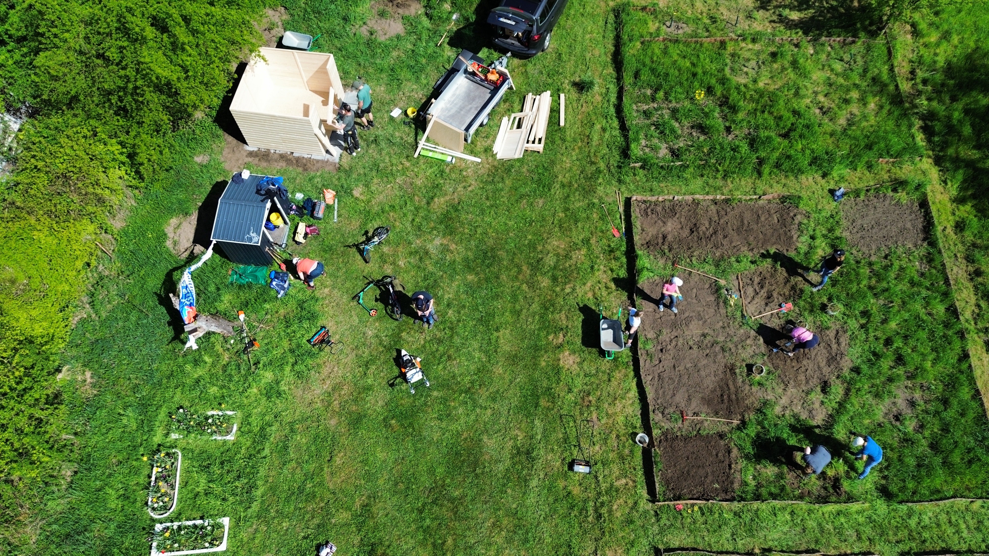 Frühjahr: In einer großen Gemeinschaftsaktion wurden Brombeerhecken zurückgeschnitten, der Boden vorbereitet und ein Schuppen aufgebaut. Sommer: Der Garten wurde gepflegt. Ausgesäte Pflanzen wie Mangold, Kürbis und Kartoffeln wuchsen prächtig. Herbst: Trotz sinkender Temperaturen wurde weiter gejätet, gemäht und neue Ausstattung eingebracht. Winter: Der Garten wurde winterfest gemacht und erste Frühblüher wurden gepflanzt.