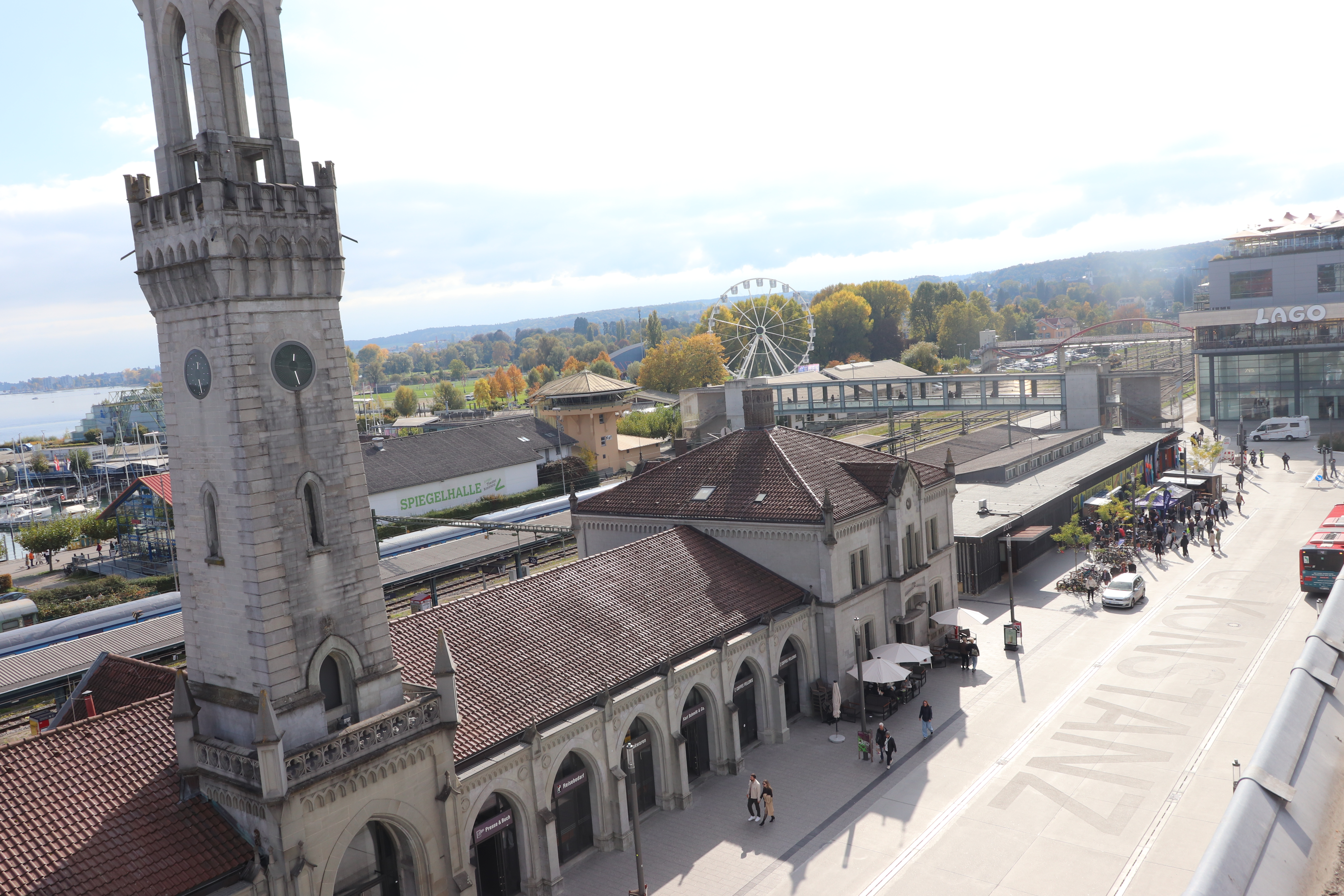 Seit der Eröffnung des Bahnhofs im Jahr 1863 ist der Bahnhofplatz das Tor zur Stadt. Unter Oberbürgermeister Max Stromeyer ist damals ein repräsentativer Raum mit Hotels und Verwaltungsbauten entstanden, der als Ort des Ankommens und des Abfahrens sowie als Visitenkarte von Konstanz diente. Zuletzt war der Platz jedoch durch Verkehr geprägt: Täglich haben rund 10.000 Fahrzeuge das Areal überquert. Die einstige
