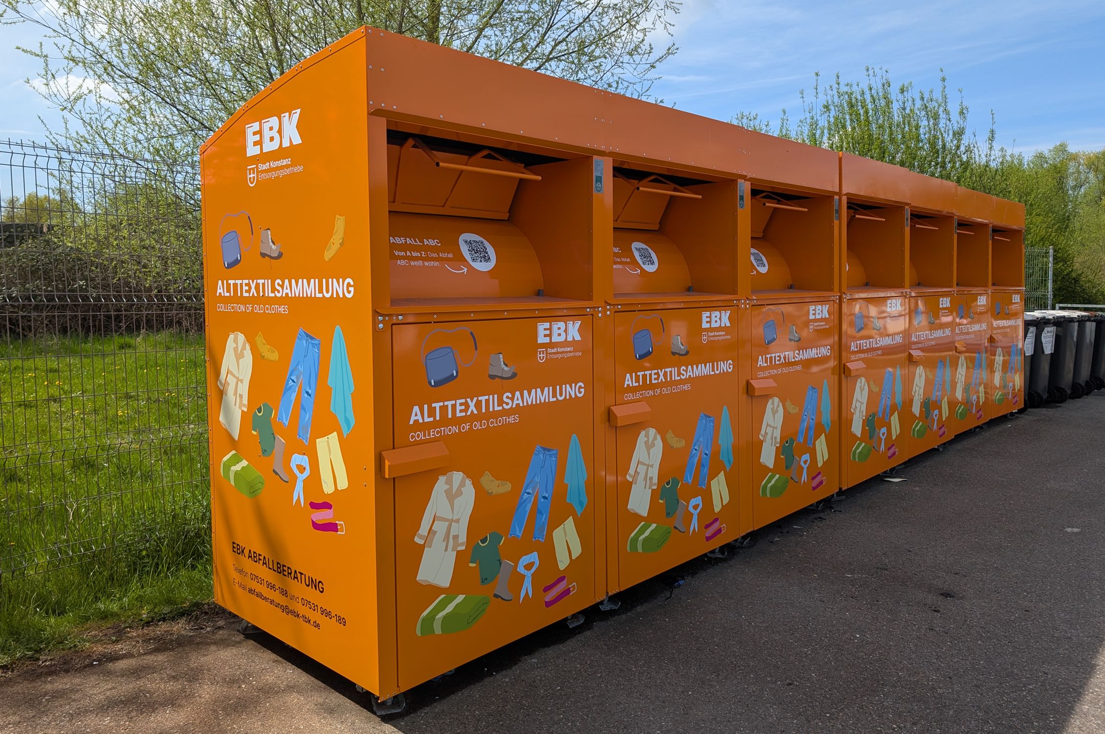 Die Entsorgungsbetriebe Stadt Konstanz (EBK) stellen als öffentlich-rechtlicher Entsorgungsträger die getrennte Sammlung von Alttextilien weiterhin auf den Wertstoffhöfen sicher. Die Konstanzerinnen und Konstanzer können Textilien, Kleidungsstücke und Schuhe in den orangefarbenen Containern auf den Wertstoffhöfen wie gewohnt zuverlässig entsorgen.