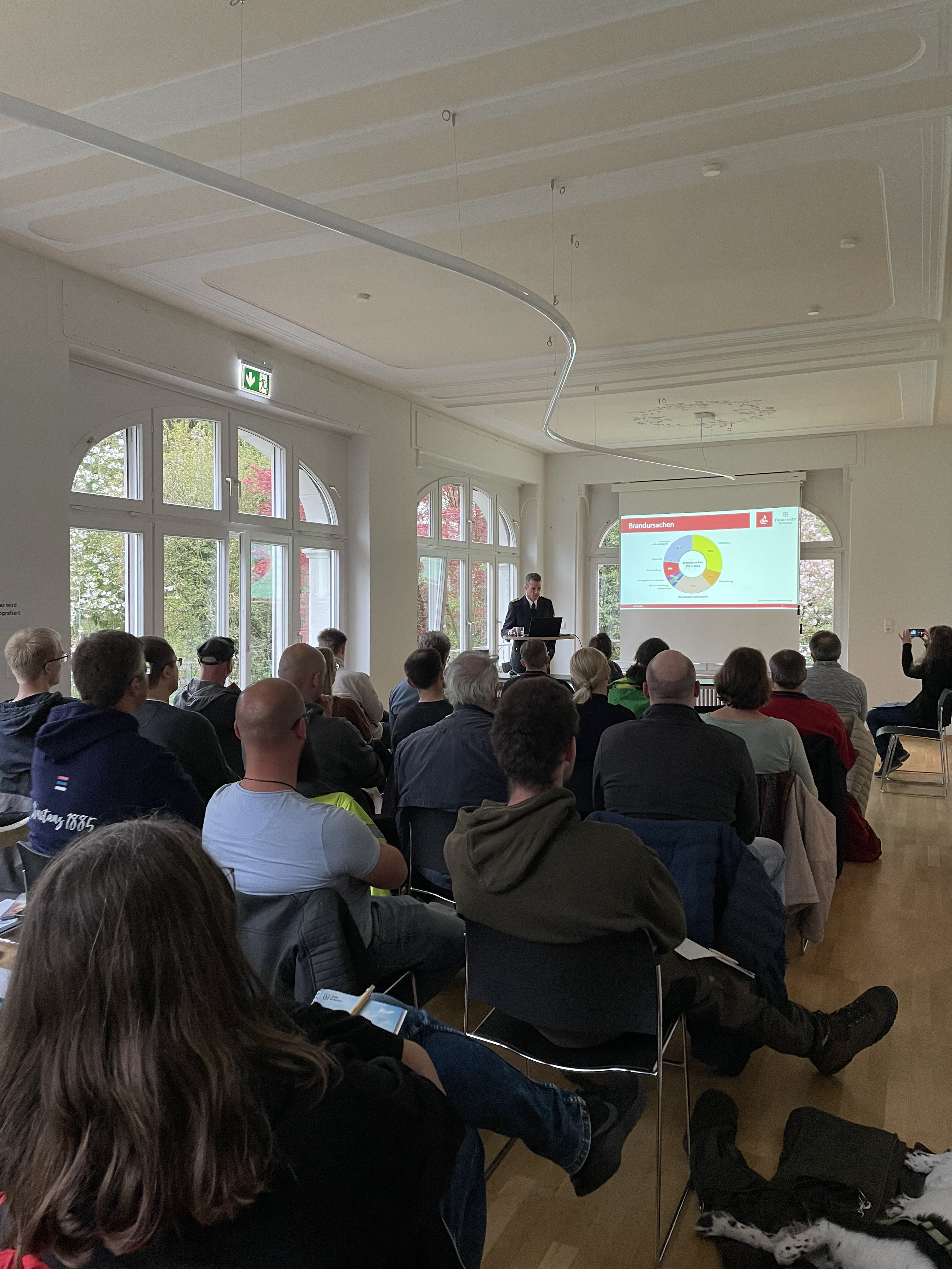 Auch praktische Aspekte wie die Verwendung schwer entflammbarer Dekorationen, die Bedeutung von Personenzahlen und Bestuhlungsplänen wurden anschaulich dargestellt. Die im Vorfeld eingereichten Fragen der Teilnehmenden wurden gezielt in den Vortrag integriert. Gleichzeitig bestand jederzeit die Möglichkeit, individuelle Fragen zu stellen und eigene Erfahrungen einzubringen.