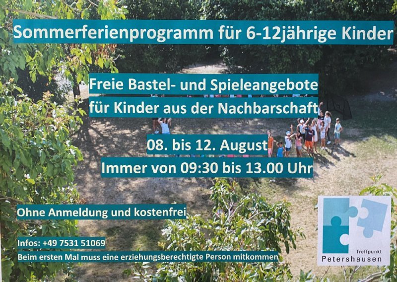 Weitere Infos erhalten Sie im Treffpunkt Petershausen unter: 07531-51069