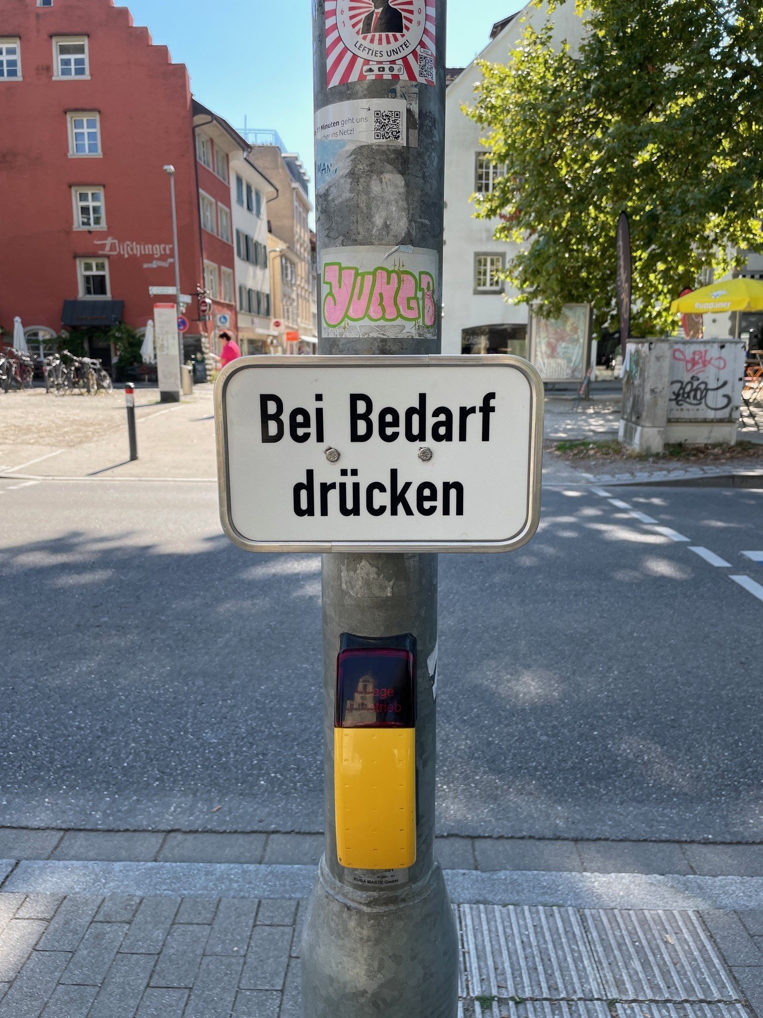 Bereits seit 2008 gibt es „Dunkelampeln“ im Konstanzer Stadtgebiet. An diesen Ampeln zeigen die Signale kein Licht, sie befinden sich im „Schlafmodus“. Das hat den Vorteil, dass FußgängerInnen selbst entscheiden können, ob sie zum Queren der Straße die Sicherheit einer Ampel benötigen. Sofern sie es sich zutrauen, können sie die Lücken im Verkehrsstrom nutzen und bei inaktiver Ampel über die Straße gehen – so begehen sie keinen Rotlichtverstoß.