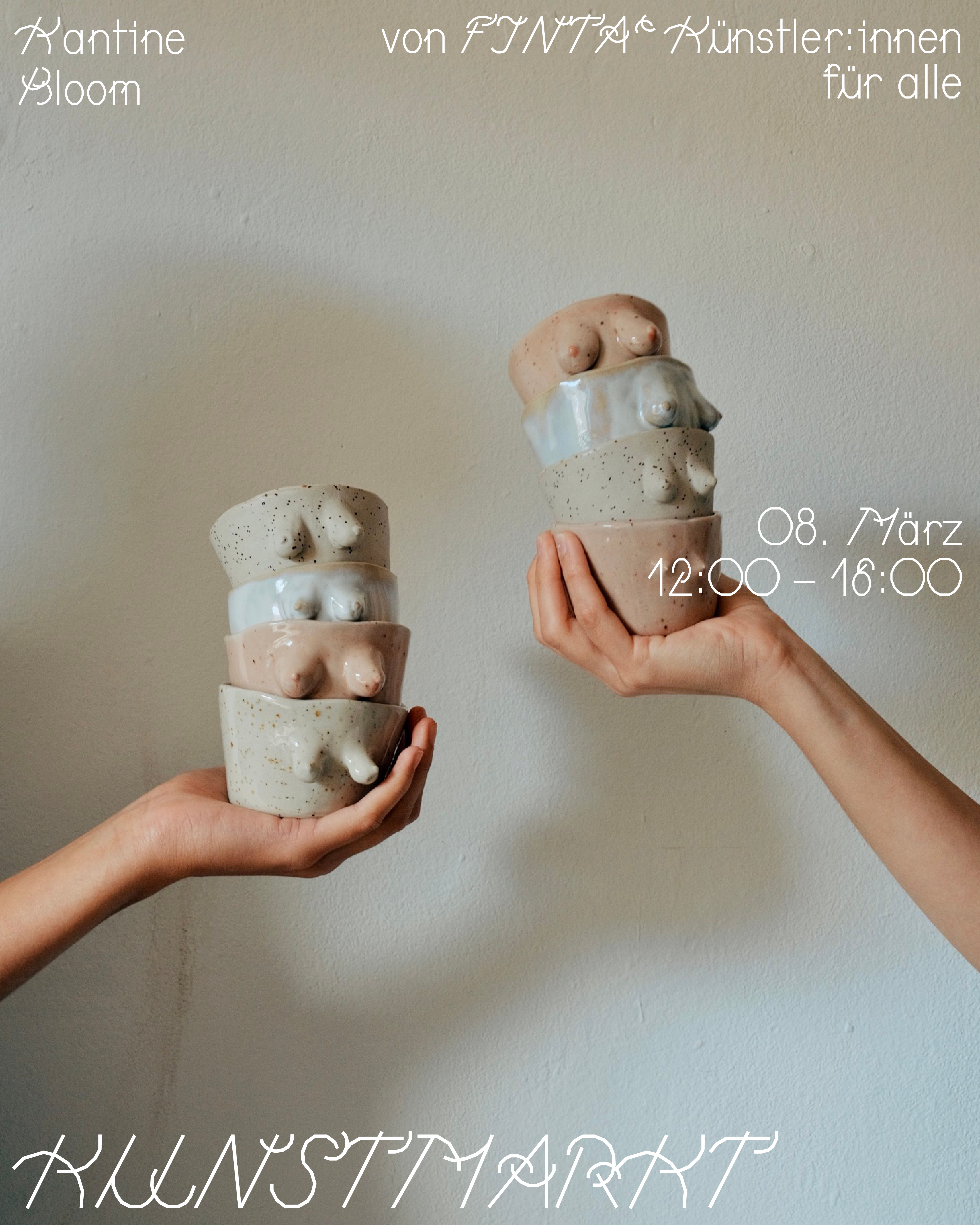 Kunstmarkt, auf dem Künstler*innen ihre Werke präsentieren und verkaufen können. FINTA*s haben es auf dem Kunstmarkt oft schwerer: Sie kämpfen gegen unsichtbare patriarchale Barrieren. Oft fehlt ihnen der Zugang zu Netzwerken, was sowohl ihre Reichweite als auch ihren Verdienst schmälert.