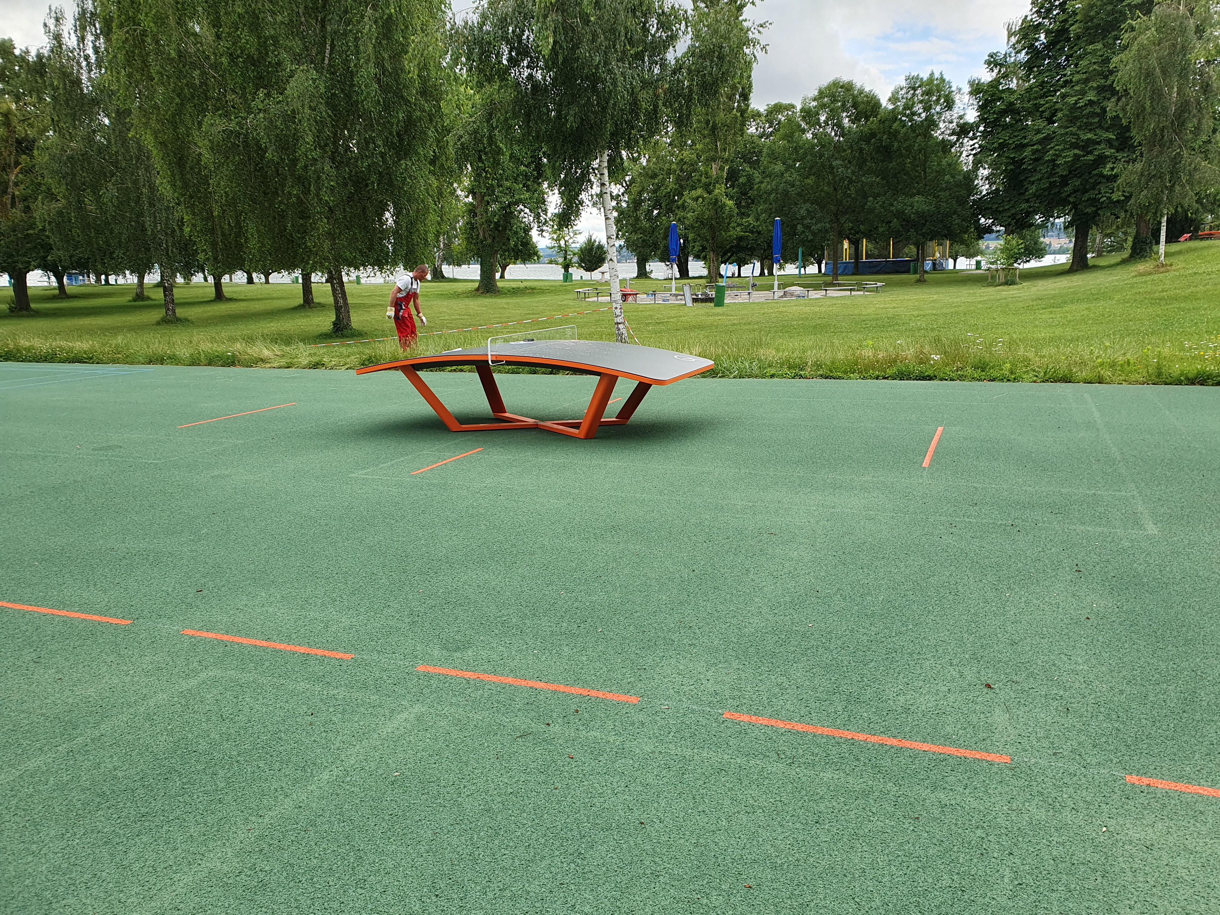 Seit Juni 2024 bereichert eine Teqball-Platte das Strandbad Horn. Teqball ist eine Mischung aus Fuß-, Hand- oder Basketball und Tischtennis. Es wird an einer gewölbten Platte gespielt.