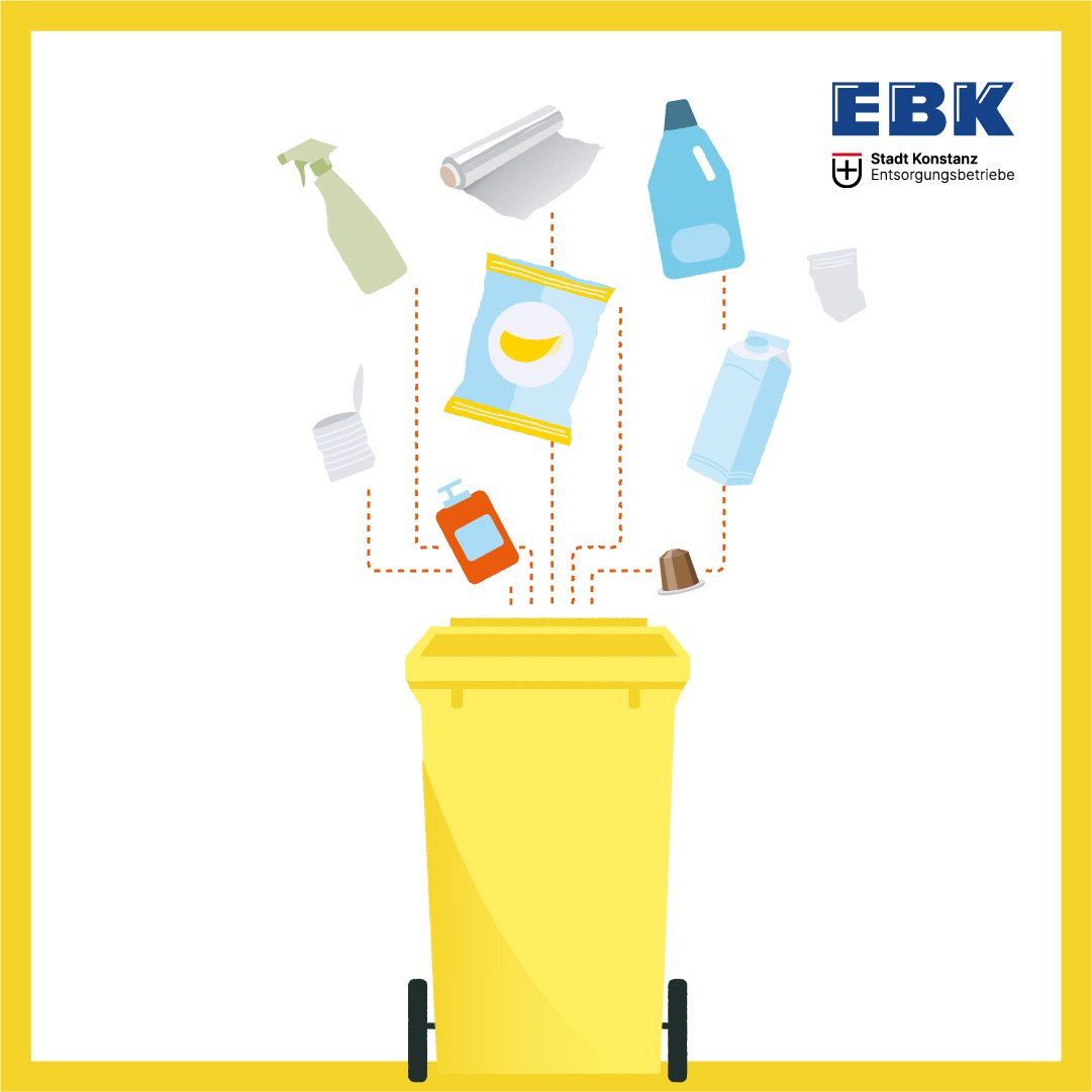2.069 Tonnen wiegen die von den EBK im Jahr 2024 gesammelten Gelben Säcke. Im Gelben Sack beziehungsweise der Gelben Tonne werden Verpackungsabfälle aus Kunststoff, Metall und sogenannten Verbundstoffen wie Getränkekartons entsorgt und verwertet. 2024 haben die EBK pro Kopf 24 Kilogramm dieser Verpackungsabfälle gesammelt. Das entspricht etwa der Vorjahresmenge von 23 Kilogramm pro Kopf. Wichtig zu wissen: Die Entsorgung und anschließende Verwertung im Gelben Sack wird nicht über die Abfallgebühren bezahlt. Die Hersteller und Produzenten sind für die Entsorgung und Verwertung ihrer Verpackungsabfälle verantwortlich und haben damit die Dualen Systeme beauftragt. Die Verwertung der Verpackungen bezahlt man also mit einer im Verkaufspreis enthaltenen Verpackungsabgabe. Für die Verwertung der Verpackungsabfälle gelten strenge Vorgaben und Quoten. Der Konstanzer Gelbe Sack wird in Rheinfelden (Baden), also auf deutscher Seite des Rheins, sortiert und das Plastik dort direkt zu recyceltem Kunststoffgranulat verwertet. Die Entsorgung von Verpackungen im Gelben Sack ist also nicht nur finanziell sinnvoll, sondern auch nachhaltig. Denn es ist der beste Weg Verpackungen aus Kunststoff, Metall und mittlerweile auch Verbundstoffe wie Tetrapaks zu recyceln.