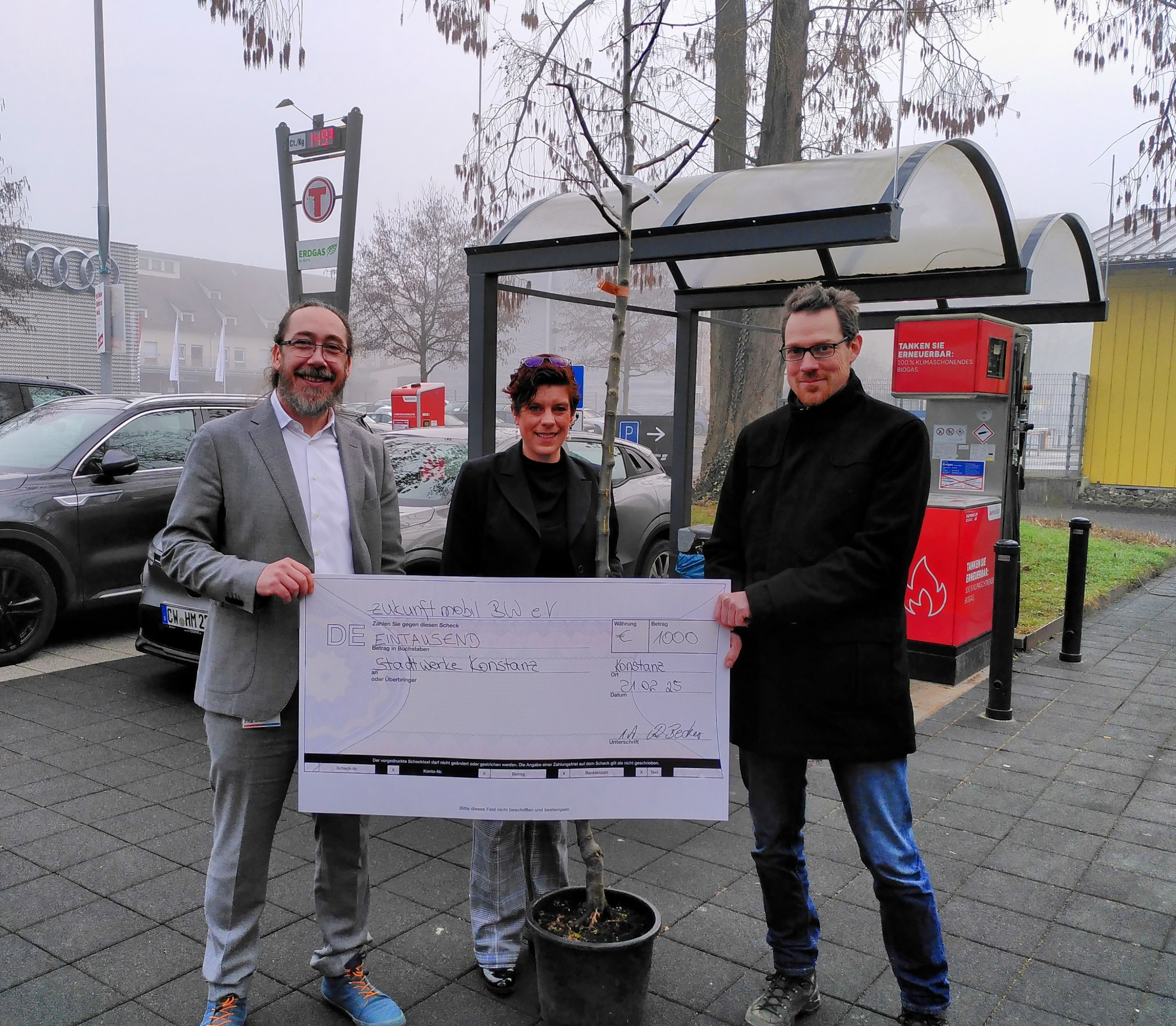 Der Verein zukunft mobil Baden-Württemberg e.V. hat den Stadtwerken Konstanz einen Streuobstbaum und 1.000 Euro zweckgebunden für das Pflanzen von Bäumen gespendet.