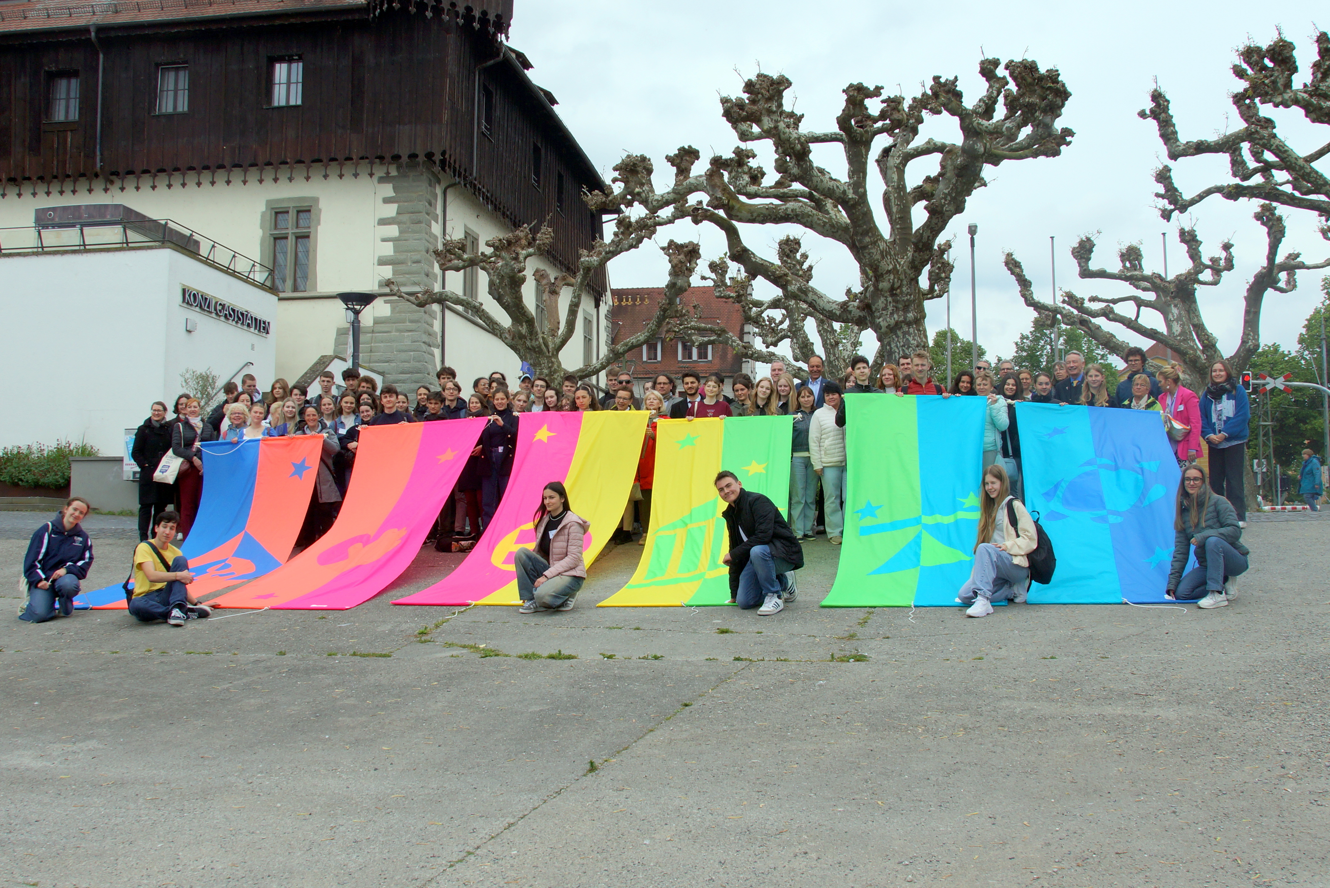 Höhepunkt war die Flaggenzeremonie vor dem Konzilgebäude, bei der die gestalteten Fahnen gehisst und symbolisch an die Partnerstädte übergeben wurden. So weht künftig in jeder der sechs Städte eine Flagge des Europakonzils und symbolisiert dort einen der Grundwerte Europas. Das Konzil endete mit einer Abschiedsparty – die in Konstanz geschlossenen Freundschaften bleiben hoffentlich noch lange bestehen.