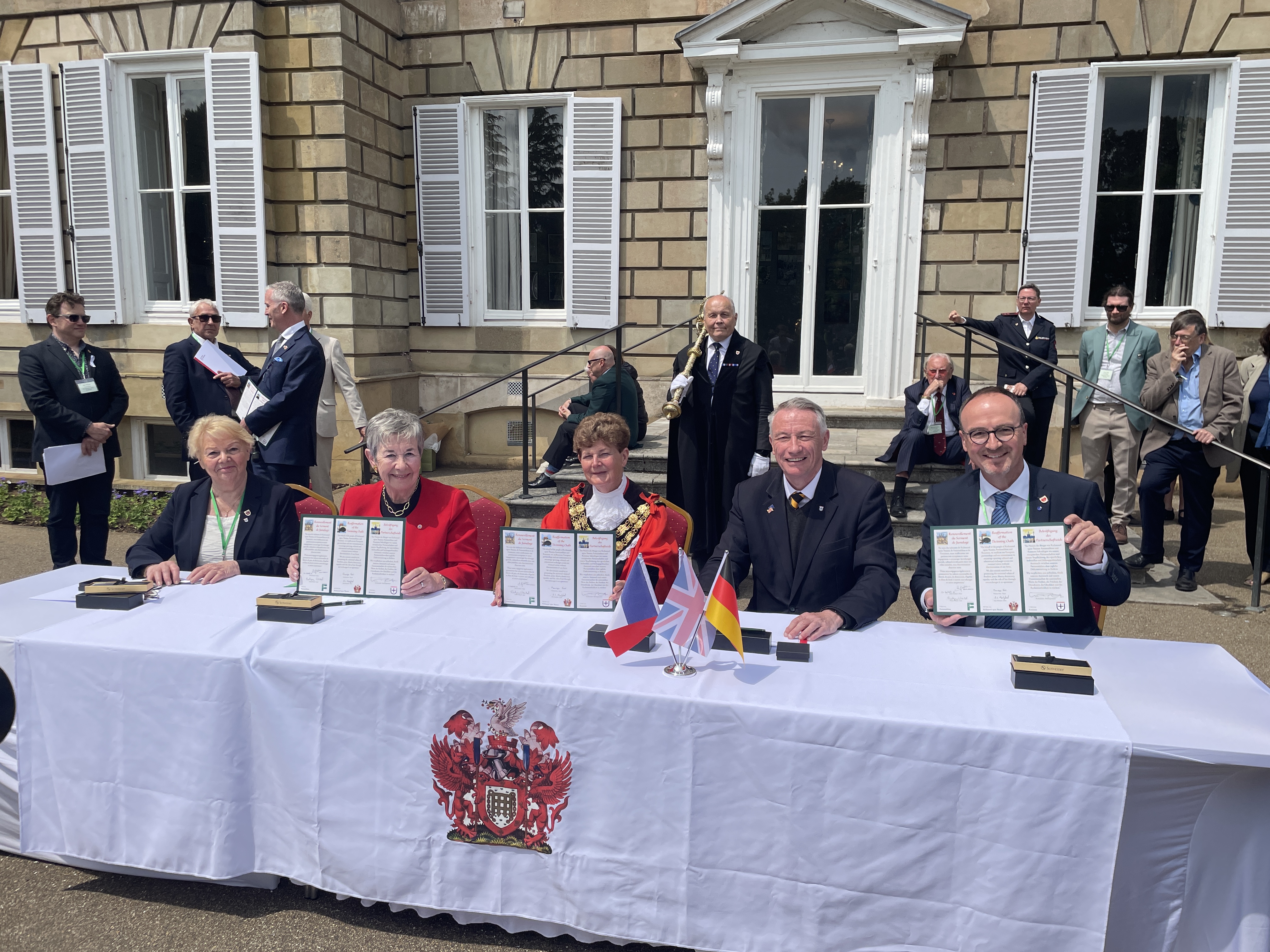 Im Rahmen eines Festakts im Garten des York House, quasi dem Rathaus des Bezirks Richmond, bekräftigten Penelope Frost, Bürgermeisterin aus Richmond, Oberbürgermeister Uli Burchardt und Odile Jacquin, Vertreterin von Bürgermeister Julien Gondard aus Fontainebleau, mit ihrer Unterschrift die bestehende Städtepartnerschaft für die nächsten fünf Jahre. In der Urkunde zur Erneuerung des Partnerschaftseids heißt es: „Im Namen der Bürger von Richmond upon Thames, Fontainebleau und Konstanz bekräftigen wir unsere europäischen Partnerschaften und unsere Verpflichtung, den sportlichen, kulturellen und bildungspolitischen Austausch zwischen unseren Partnerstädten ohne jegliche Diskriminierung zu fördern. Wir verpflichten und außerdem, durch unseren Austausch und unsere Zusammenarbeit die universellen Werte der Freiheit, des Friedens, der Demokratie, der Gleichheit und der Rechtsstaatlichkeit zu stärken.“