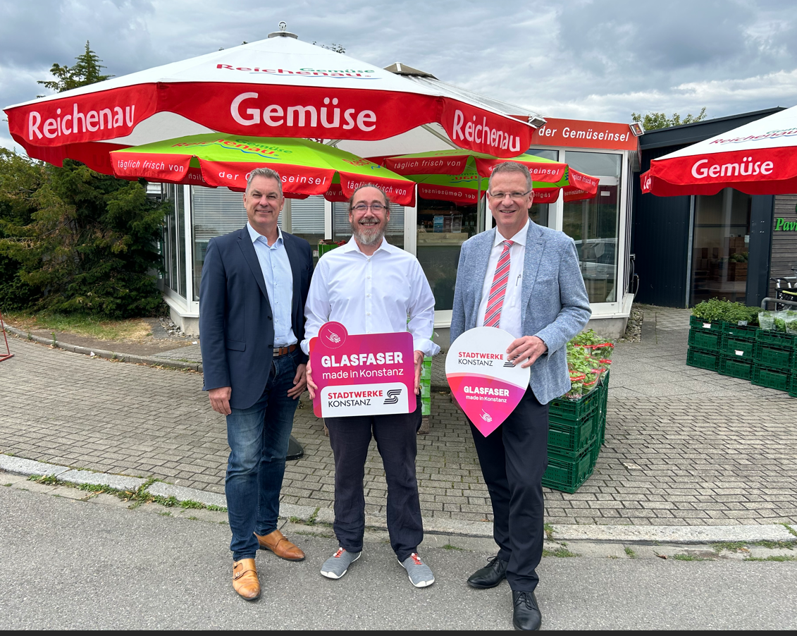 Die Insel Reichenau ist an das Glasfasernetz angeschlossen: Nachdem die Stadtwerke Konstanz in den letzten Monaten sieben Kilometer an Glasfaserleitungen auf der Insel verlegt haben, ging nun der erste Kunde ans Netz. Die Gemüse Reichenau eG wird ab sofort mit schnellem und stabilem Internet versorgt. Sehr zur Freude von Johannes Bliestle, Geschäftsführer der Gemüse Reichenau eG: „Das ist eine großartige Sache. Schnelles Internet ist eine wichtige Voraussetzung für unsere Genossenschaft, denn wir benötigen es zur Koordination und Kommunikation, die immer umfangreicher wird. Deshalb war es eine gute Entscheidung, Glasfaser auf die Insel Reichenau zu bringen.“