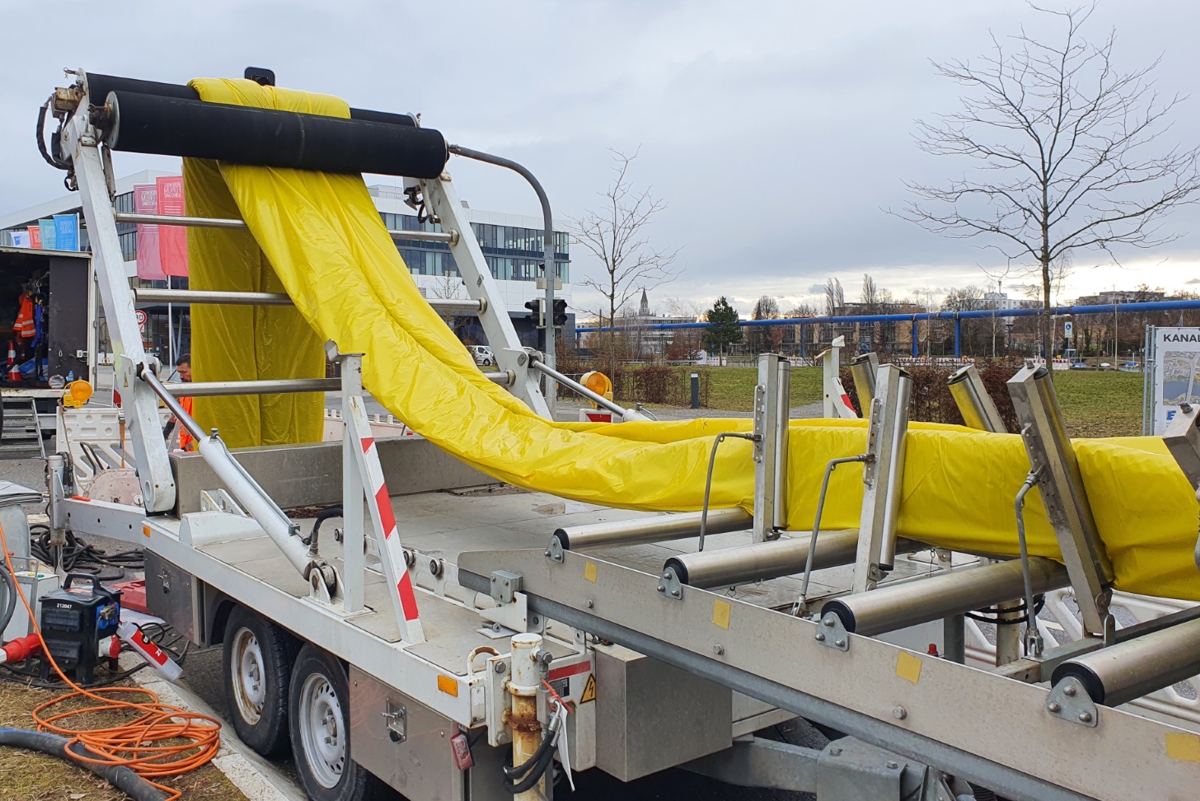 Bei der geschlossenen Bauweise wird der Kanalabschnitt ohne Straßenaufbruch saniert. So wird beim Schlauchlinerverfahren der undichte Kanal von innen mit einem in Harz getränkten Gewebeschlauch ausgekleidet. Der Gewebeschlauch wird über einen vorhanden Zustiegsschacht, also einen der Kanaldeckel eingeführt. Mit diesem Verfahren konnte der wichtige Kanal in der Reichenaustraße vergangenes Jahr auf einer Länge von knapp 1 Kilometer in kurzer Zeit und mit vergleichsweise wenig Verkehrseinschränkungen saniert werden.