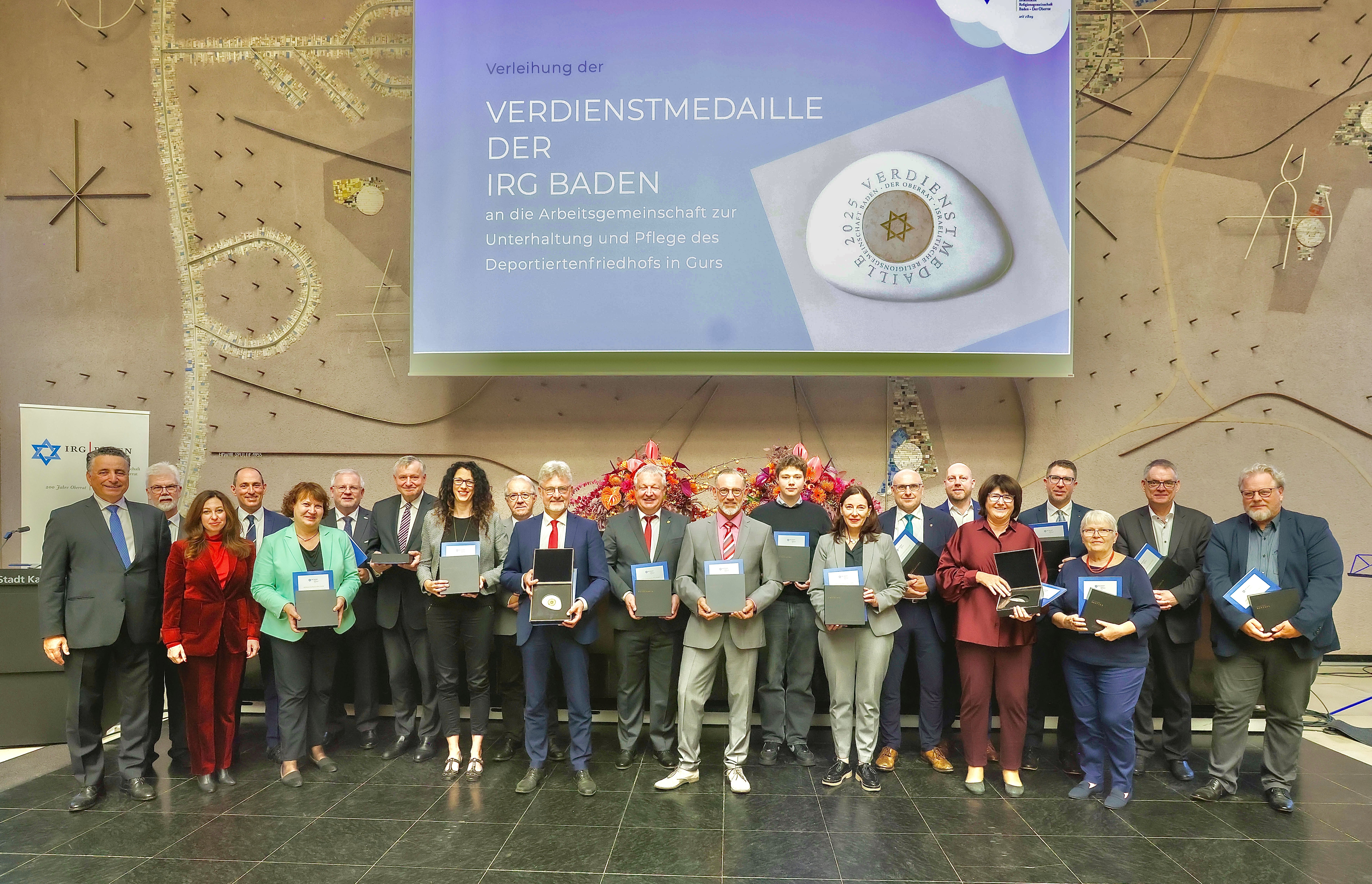 Die Israelitische Religionsgemeinschaft Baden (IRG) hat im Rahmen ihres Neujahrsempfangs am 28. September 2025 im Karlsruher Rathaus die Arbeitsgemeinschaft Gurs (AG Gurs) und ihre Mitgliedsstädte – darunter die Stadt Konstanz – mit der Verdienstmedaille ausgezeichnet. Rund 240 Gäste waren zum Empfang in Karlsruhe anwesend, der anlässlich des jüdischen Neujahrsfestes Rosch Haschana ausgerichtet wurde.