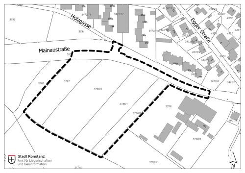 Er umfasst die Flurstücke Nr. 3786/1, 3786/5, 3786/6, 3787 (teilweise) sowie Teile der Flurstücke Nr. 3038 (Mainaustraße) und ein Teil des Flurstücks Nr. 3786 der Gemarkung Konstanz.
