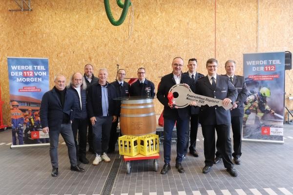 Im Anschluss übergab Oberbürgermeister Burchardt gemeinsam mit den Projektbeteiligten symbolisch den Schlüssel an Abteilungskommandant Florian Fuchs.