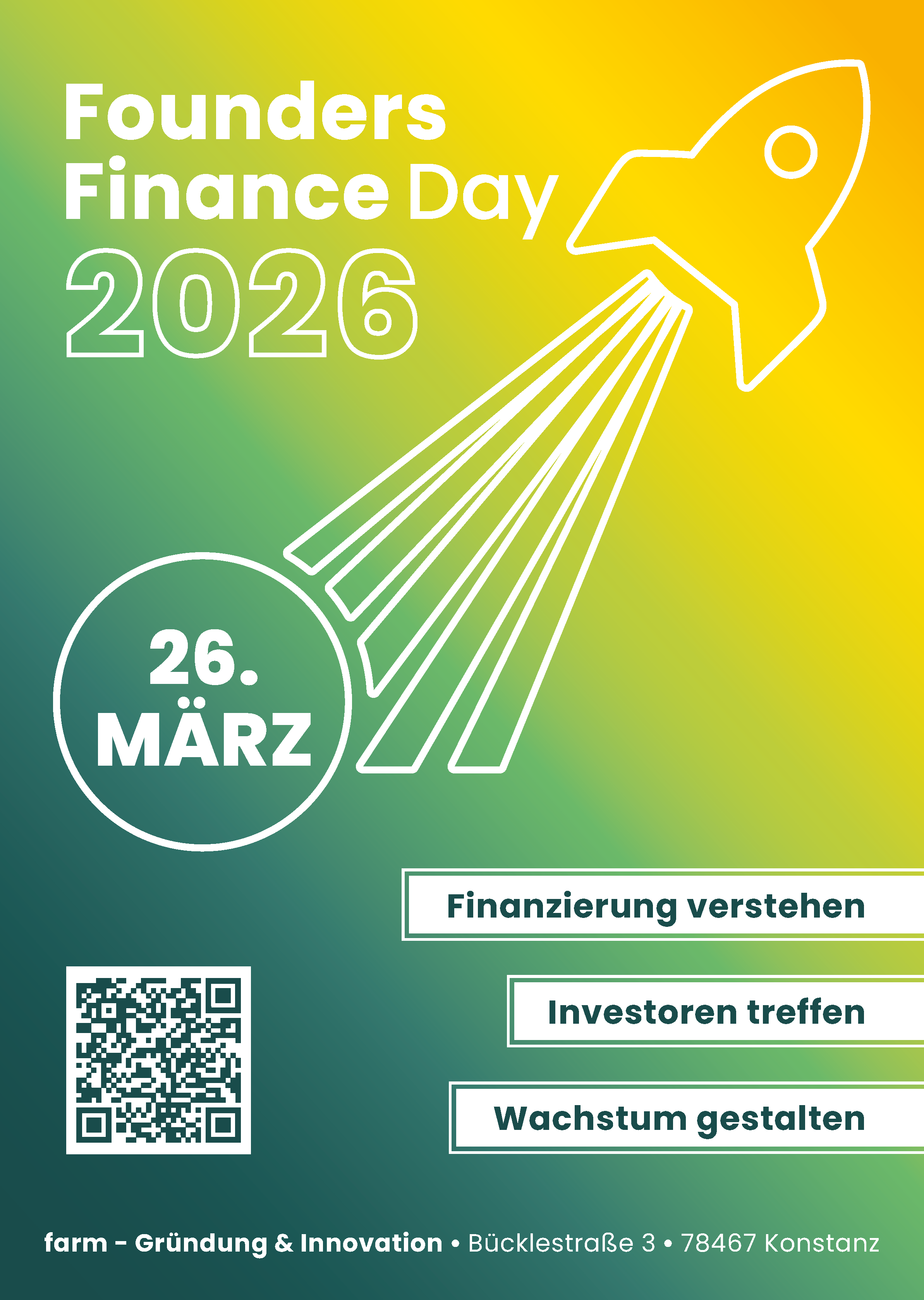 Das Gründungs- und Technologiezentrum farm schafft mit dem Event eine Plattform für praxisnahe Einblicke in Venture Capital, Business Angels und Impact Investing in der Bodenseeregion. Neben individuellem Coaching stehen Impulsvorträge und Erfahrungsberichte auf dem Programm. Ziel ist es, Start-ups gezielt auf Investorengespräche vorzubereiten sowie Scale-ups und Kapitalgebende zu vernetzen. Der Tag endet mit intensivem Networking und der Möglichkeit zur Vertiefung der Themen im persönlichen Gespräch. Die Teilnahme ist kostenfrei, für einzelne Formate ist eine Anmeldung erforderlich. Unter dem Leitgedanken „Netzwerk schafft Wachstum“ richtet sich der Founders Finance Day an Start-ups und junge Unternehmen in der Finanzierungsphase ebenso wie an erfahrene Unternehmer:innen und Kapitalgeber:innen, die sich für Invest und Mentoring engagieren möchten.