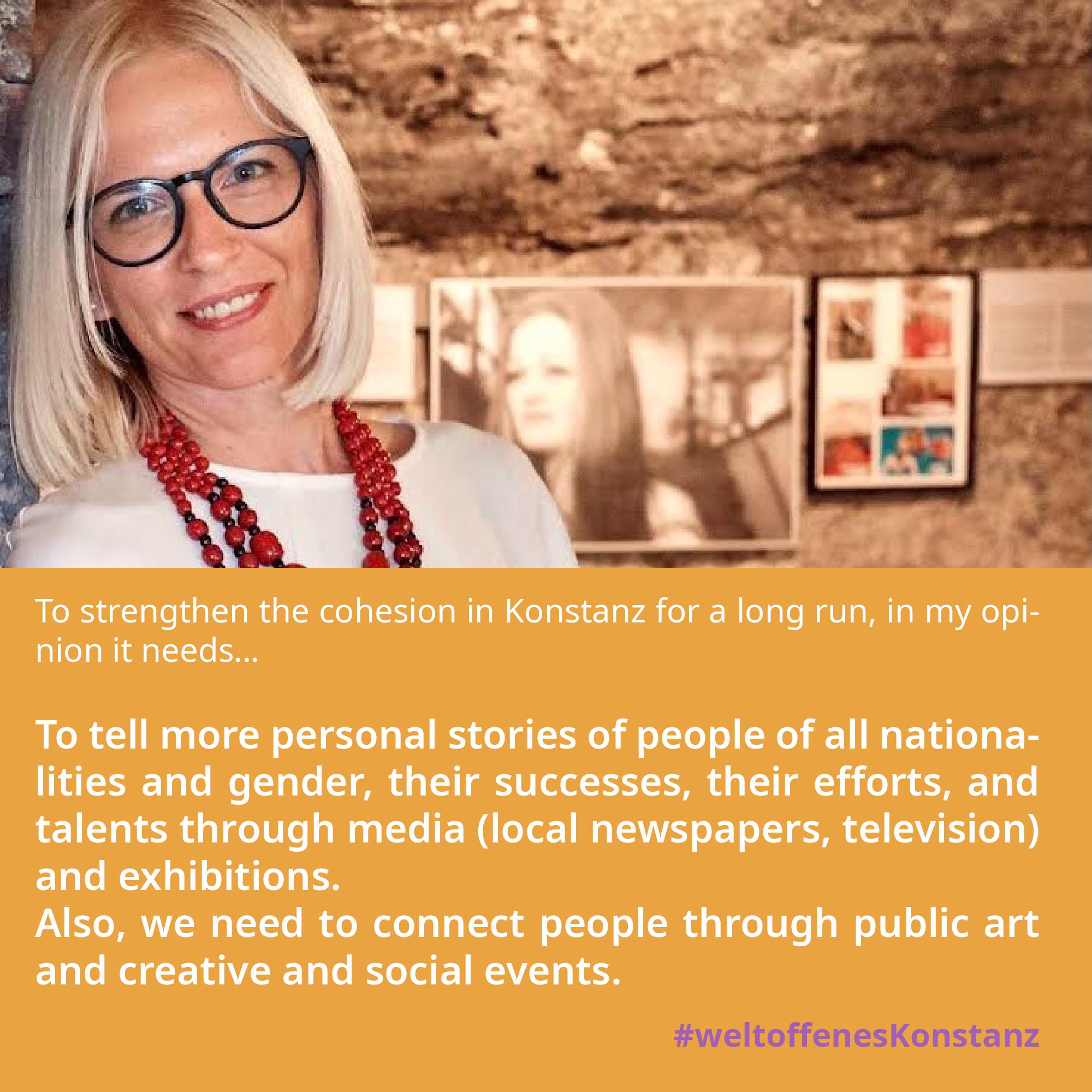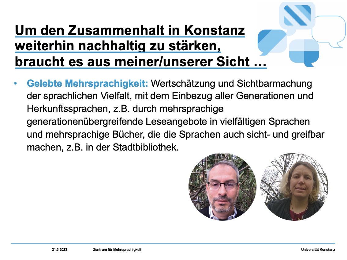 Zum Internationalen Tag gegen Rassismus am 21. März 2023 startete die Stabsstelle Konstanz International die Kampagne #weltoffenesKonstanz. Ziel war es, AkteurInnen des Zusammenhalts in Konstanz ein Gesicht zu geben und zu erfahren, wie wir den Zusammenhalt in Konstanz gemeinsam in Zukunft weiter stärken können.