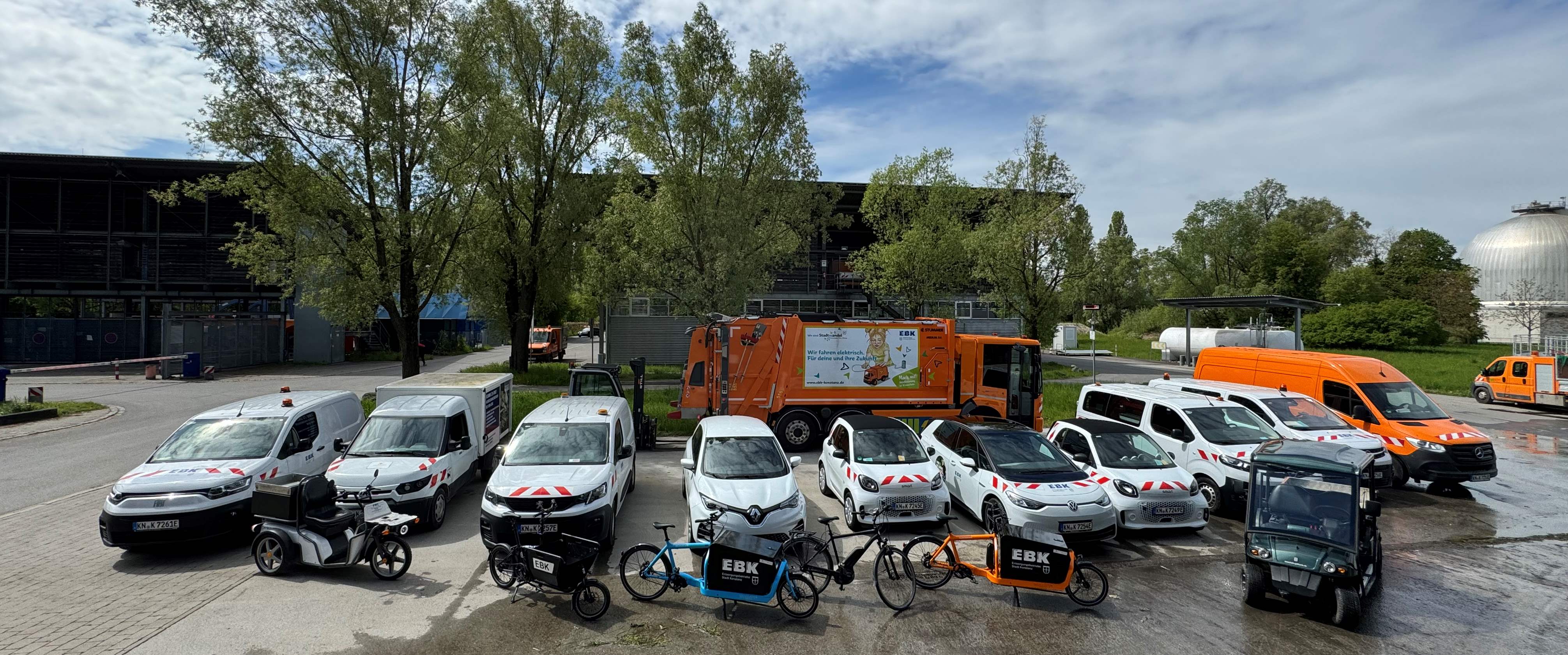 Bereits im Jahr 2021 wurde beschlossen, den gesamten EBK Fuhrpark bis 2035 auf klimaneutrale Antriebe umzubauen. Jede Fahrzeugbeschaffung wird seitdem auf dieses Ziel überprüft und diskutiert. Ein Fahrzeug, das von den EBK beschafft wird, ist in der Regel mindestens zehn Jahre im Dienst. Die EBK setzen dabei auf vollelektrische Antriebe als vorrangige Alternative zu fossilen Brennstoffen. Allerdings gibt es bei den verschiedenen Fahrzeugklassen verschiedene Herausforderungen: Die Umstellung von Pkw und Lkw bis zu 3,5 Tonnen auf E-Antriebe ist weitgehend unproblematisch. Aktuell, im März 2026, werden bereits fünf von sechs Pkw und sechs von zwölf Kleintransportern der EBK vollelektrisch betrieben.
