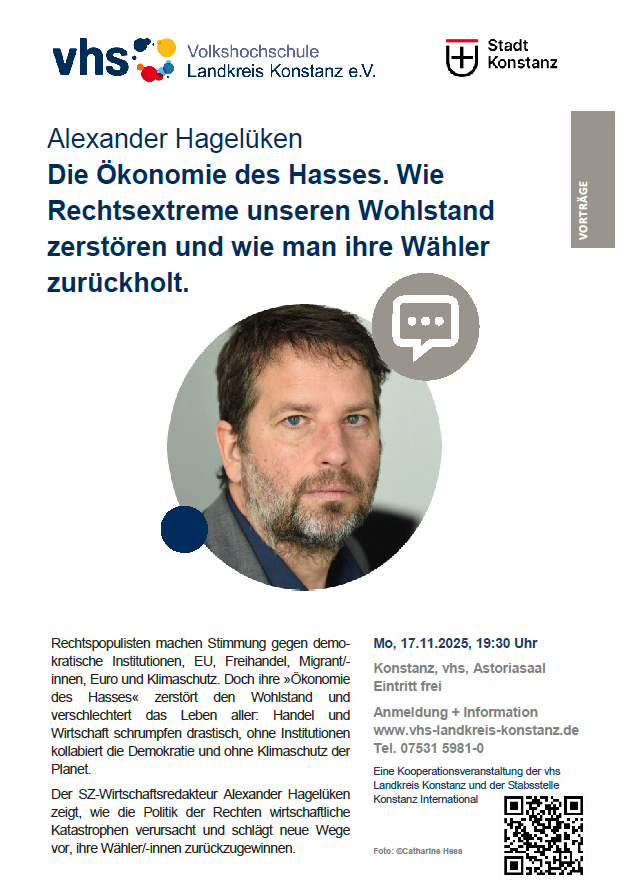 Eintritt frei, Anmeldung + Information unter www.vhs-landkreis-konstanz.de /Tel.: 07531 59810