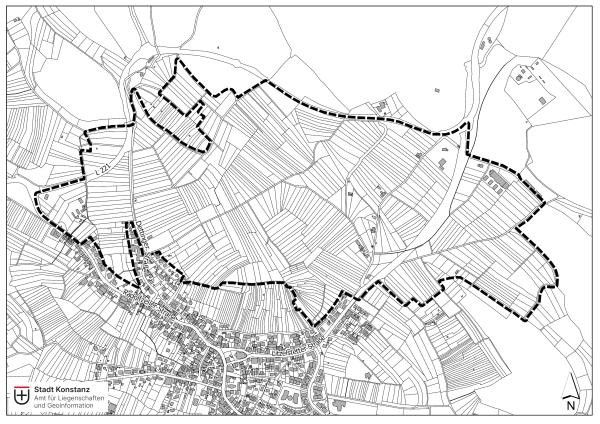 Der Geltungsbereich umfasst 102 ha und befindet sich auf der Gemarkung Konstanz, nördlich des Stadtteils Wollmatingen.