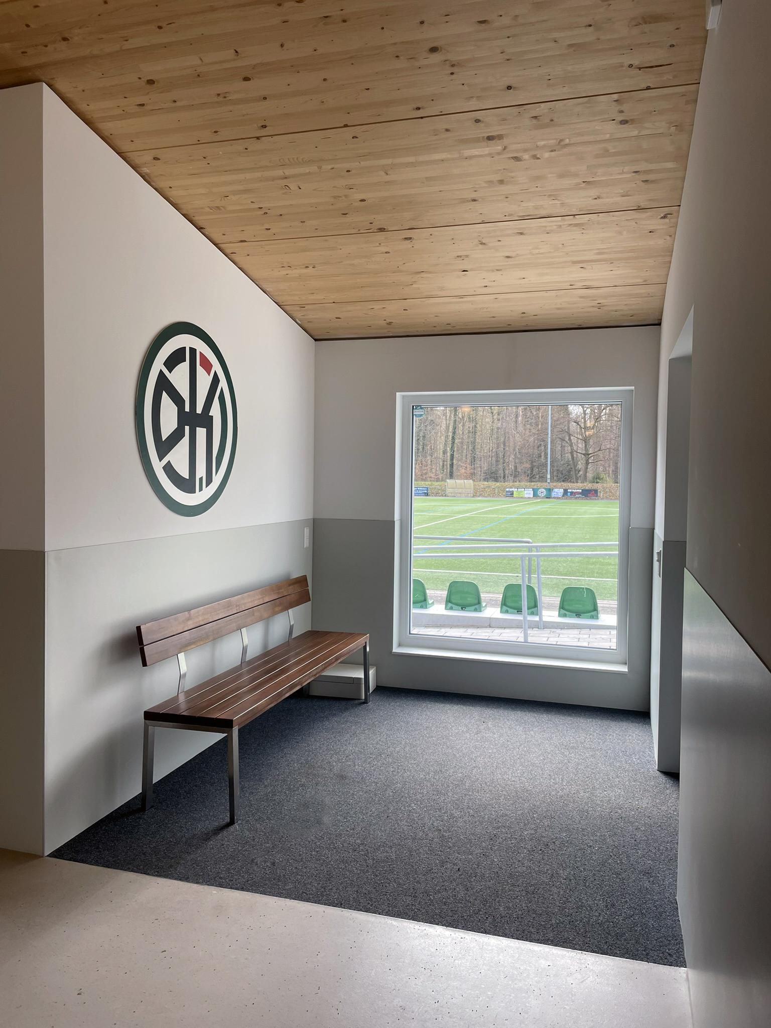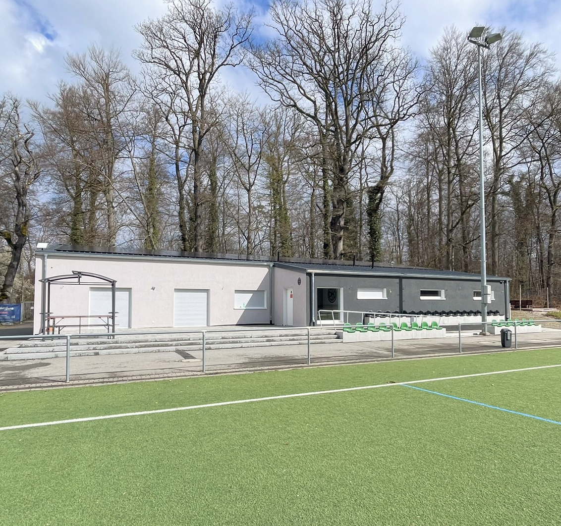 Bei der Erweiterung und energetischen Sanierung haben sich die FußballerInnen für die Umsetzung des KFW 55 EE Standards entschieden. Dieser Standard geht deutlich über die gesetzlichen Mindestanforderungen nach GEG hinaus und zeigt das Engagement des Vereins für den Klimaschutz.