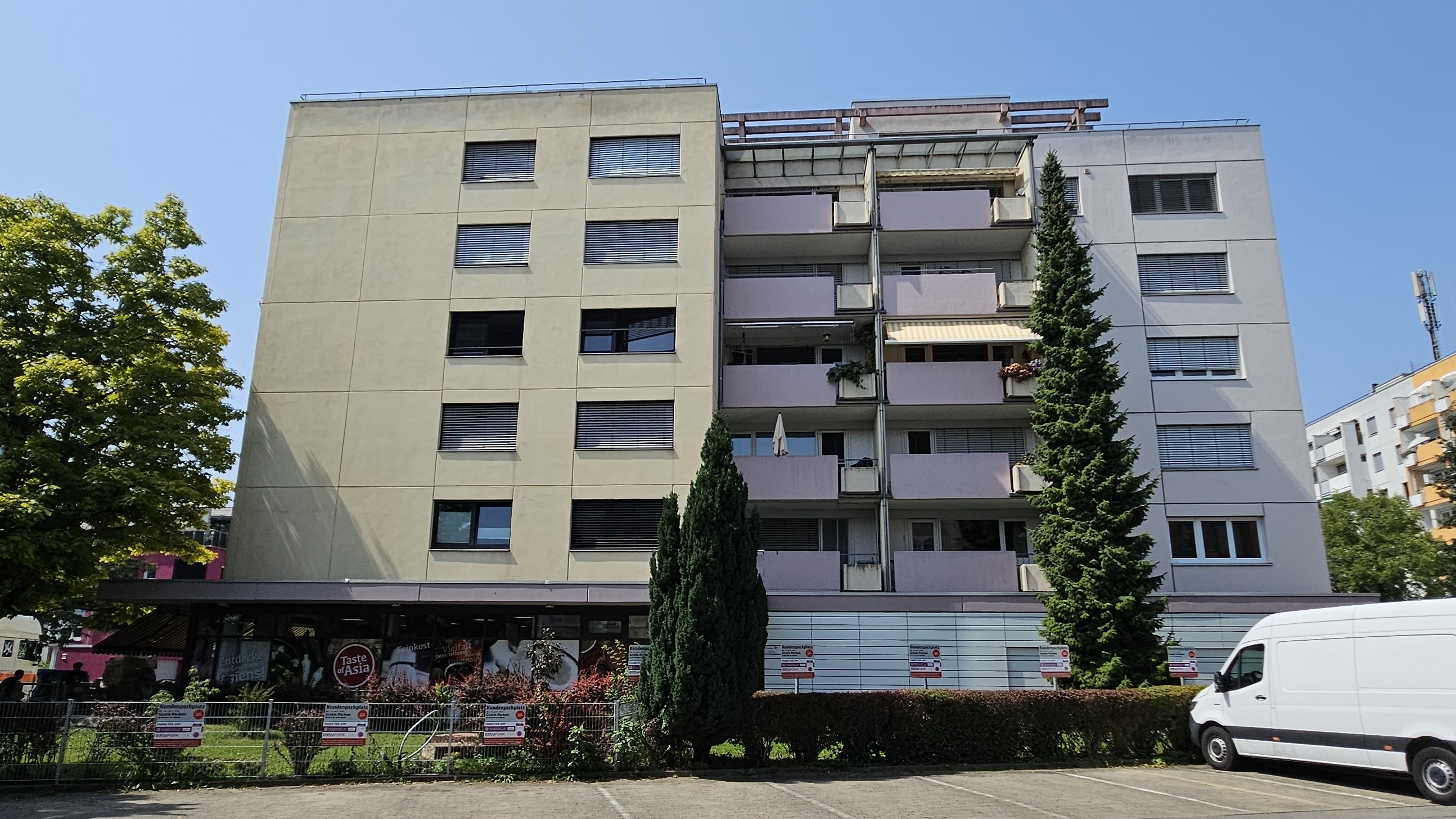 Das Gebäude in der Sankt-Gebhard-Straße 19 wurde 1974 gebaut und verfügt über fünf Wohneinheiten plus eine Gewerbefläche im Erdgeschoss. Die hohen Fassaden mit Ausrichtungen nach Osten, Süden und Westen eigenen sich ideal für eine Stromerzeugung über den gesamten Tagesverlauf mit Fassaden-PV. Bis Ende April 2026 soll die Umsetzung erfolgen.
