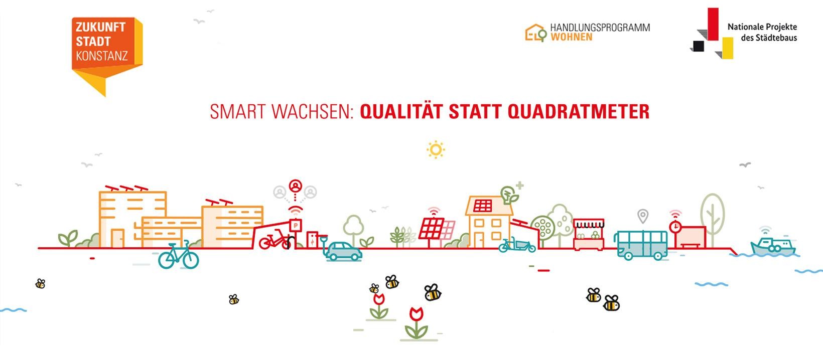 ... lautet die Vision des Projekts „Zukunftsstadt Konstanz“, die auf Basis des Handlungsprogramms Wohnen der Stadt Konstanz gemeinsam mit KonstanzerInnen und lokalen FachexpertInnen für das Modellprojekt entwickelt wurde. Auf dieser Seite wollen wir diese Vision mit ihren verschiedenen Facetten erläutern. Die Inhalte werden mit dem weiteren Projektverlauf laufend aktualisiert und angepasst und mit neuen Projekterkenntnissen angereichert.